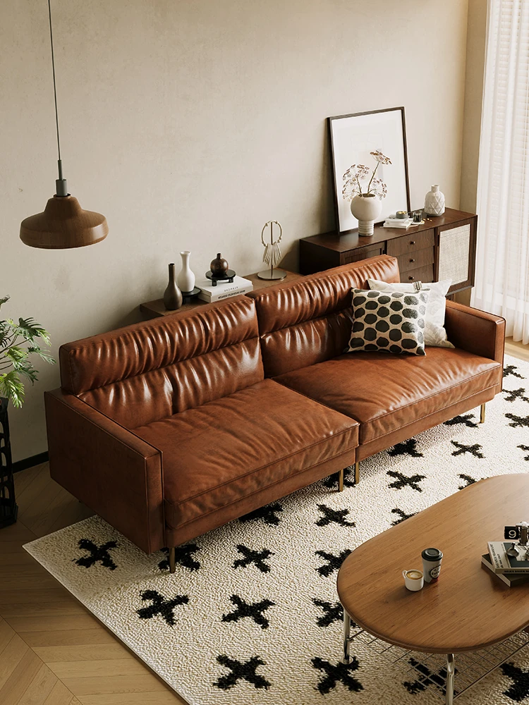 イタリアンミニマリズム 北欧スタイル 本革ソファ 高品質なトップグレインレザー 小型リビングに最適 中古風モダンデザイン シンプルで洗練された快適さを提供します!