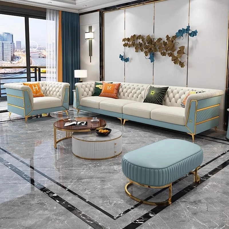 北欧スタイルの本革ソファー|インダストリアルデザイン|曲線的なクリエイティブリビングルーム用レトロスタイル|上質なトップレザー使用のユニークなソファセット