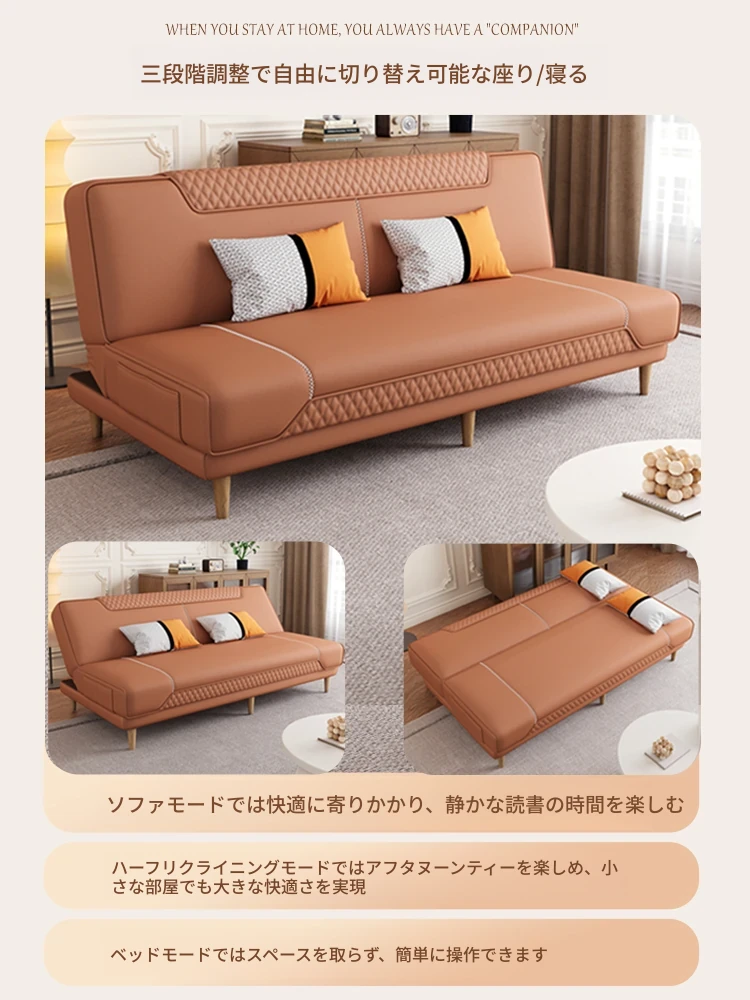 【香港・マカオ送料無料】2024年新作!多機能ソファベッド 折りたたみ式 二用タイプ 小型リビングにぴったりなクリームカラー✨快適なスペースを実現!