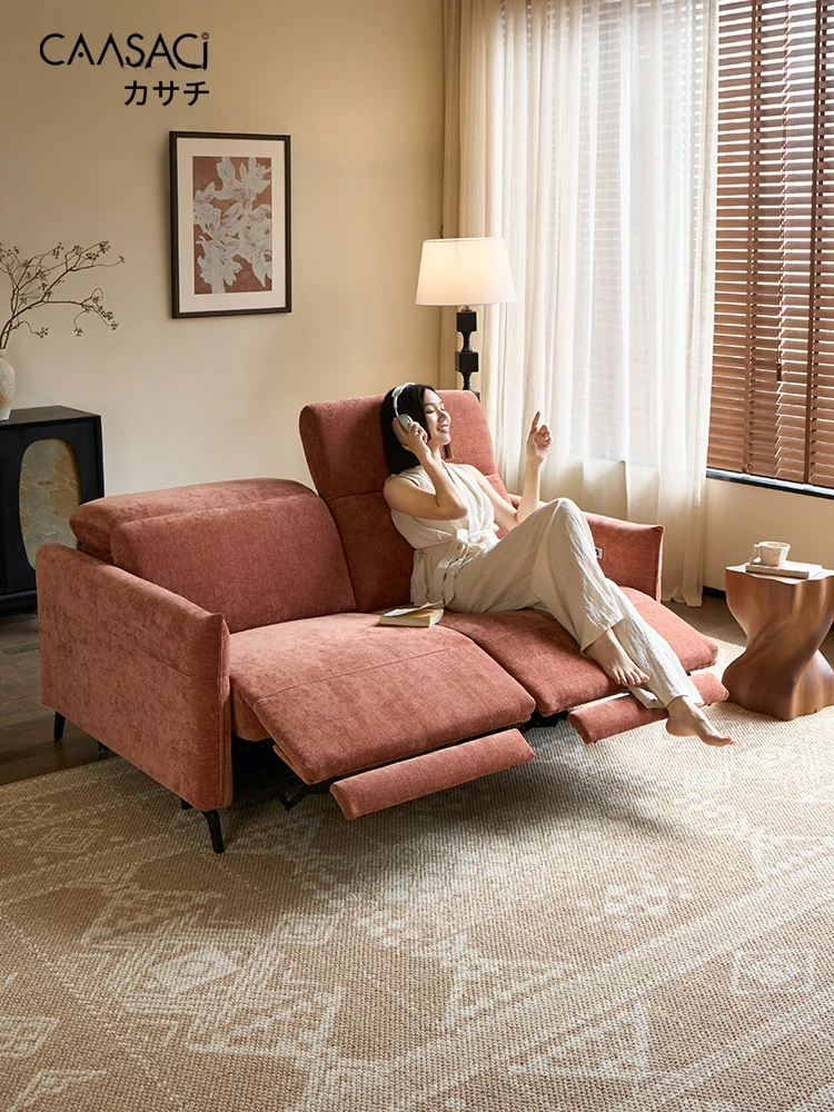 カサーチ二人用ソファ 小型リビングや寝室に最適 ヴィンテージ風ファブリック シェニール使用 シンプルでスタイリッシュな電動機能ソファ