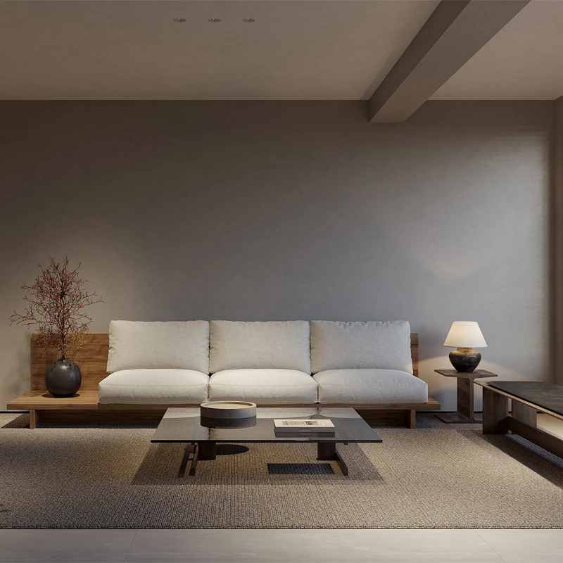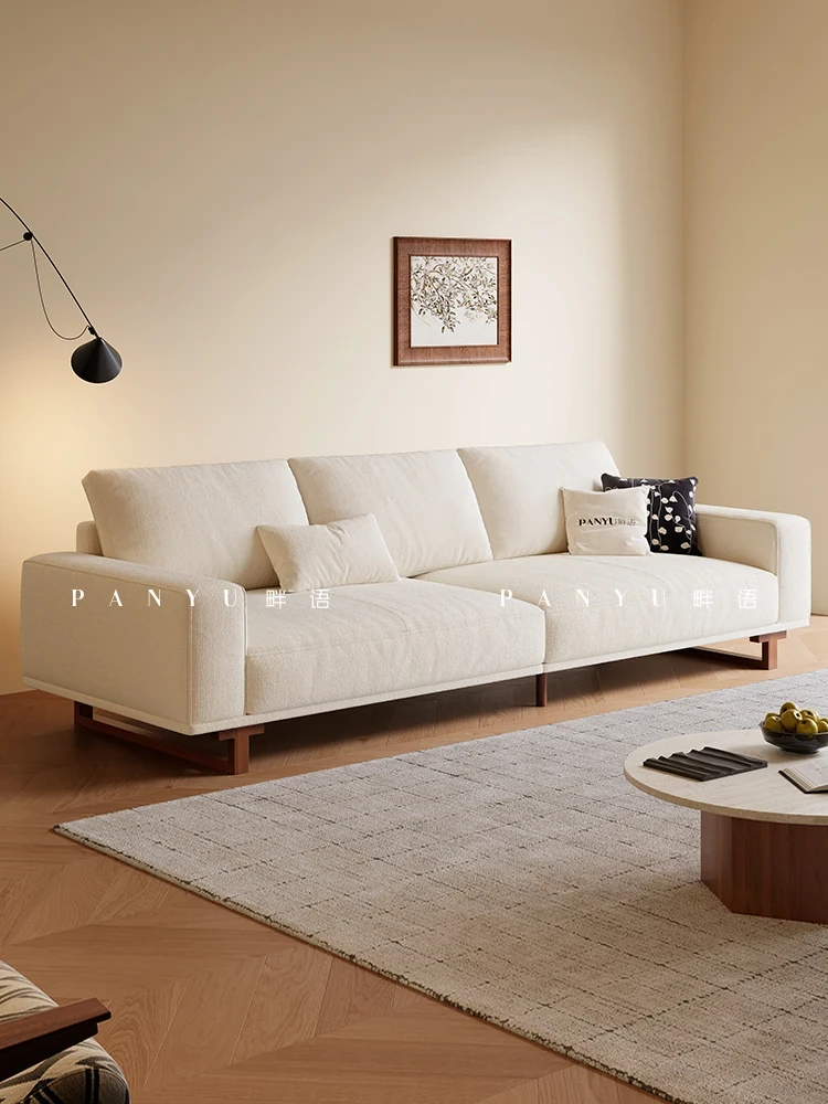 畔語の豆腐ブロックソファ - 侘寂風のリビングにぴったり!直立の実木脚、洗えるデザイン、ラテックスと麻の組み合わせで、快適さとスタイルを両立。心地よい空間を演出します!