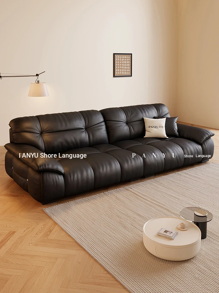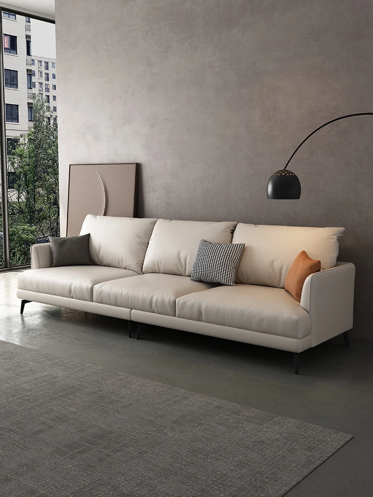 Genuine Leather Sofa - Italian Modern Minimalist 3-Seater for Small Spaces, Crafted with Top-Grade Cowhide and Cat Paw Fabric, Model 8967