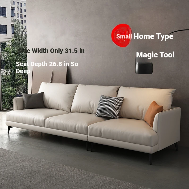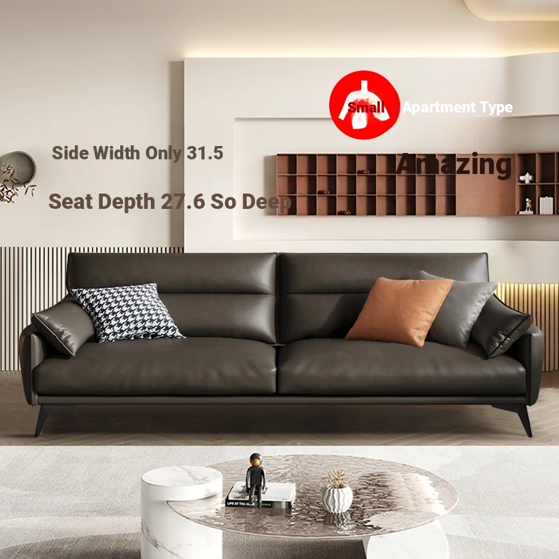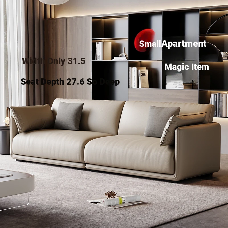New 80cm Narrow Modern Minimalist Genuine Leather Sofa for Living Room, Top Grain Italian Leather, Perfect for Small Spaces, Direct Floor Design - Model 889