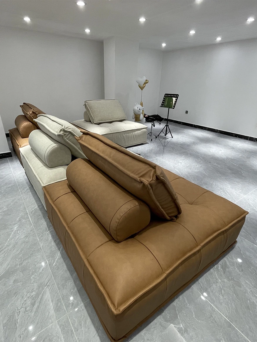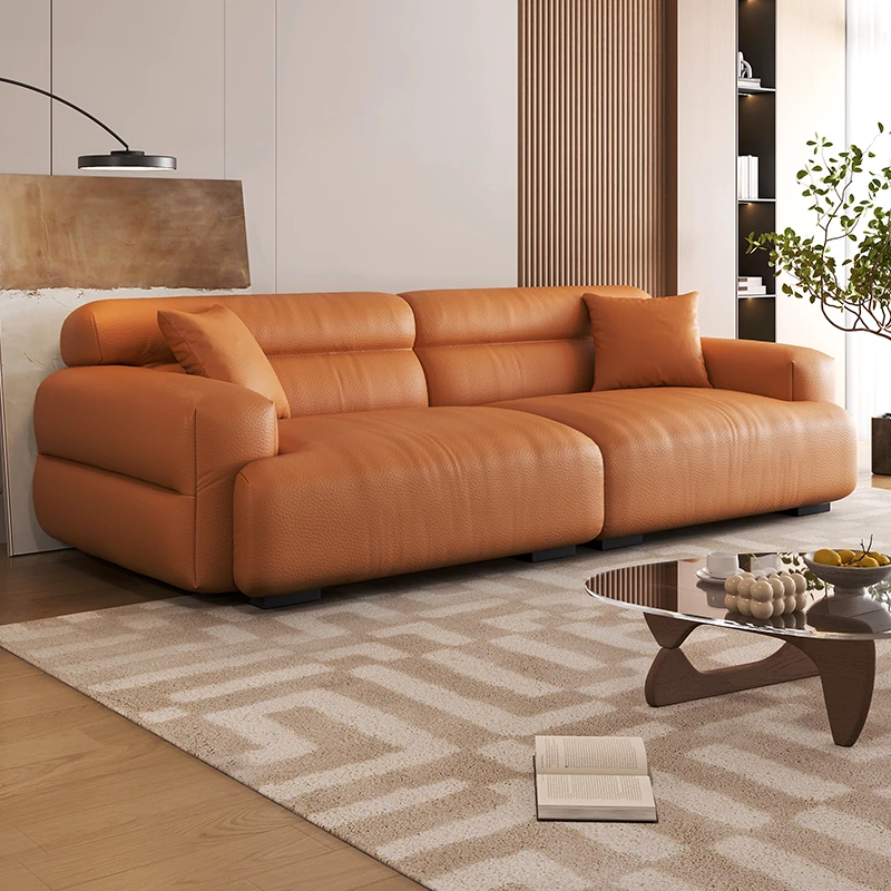 Authentic Piedmont Leather Modular Sofa - Scandinavian Wabi-Sabi Style, Single Lazy Chair & Block Design for Ultimate Comfort, Perfect for Stylish Living Spaces