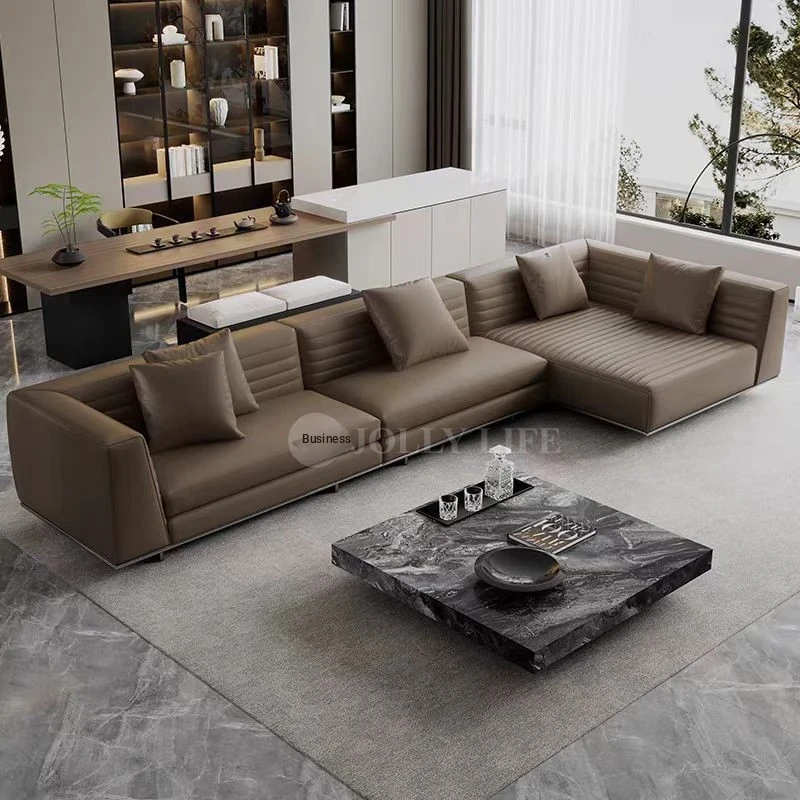 Italian Luxury Genuine Leather Roger Designer Minimalist L-Shaped Sofa for Spacious Living Rooms - Stylish & Comfortable Cowhide Sectional Couch