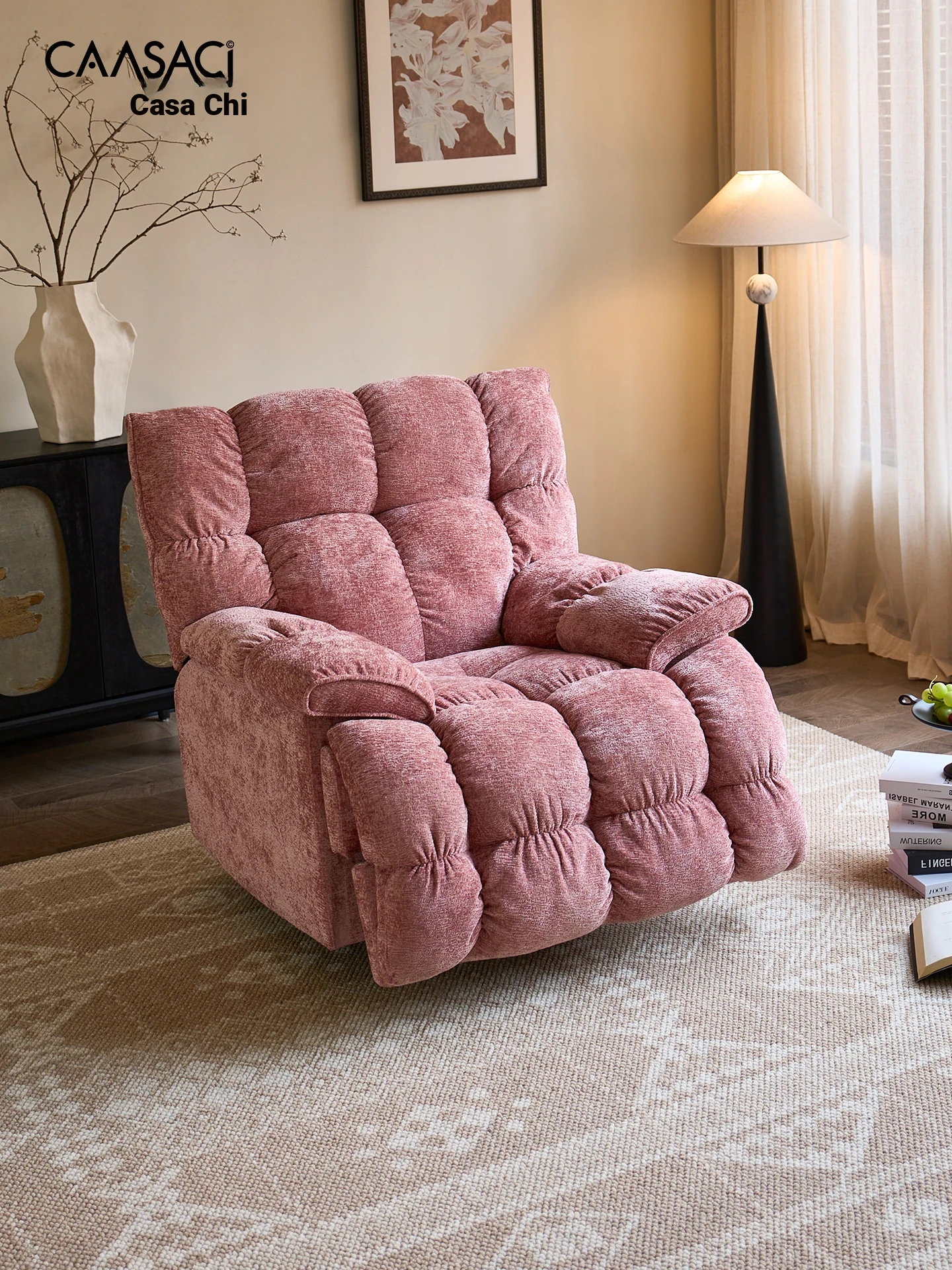 Casarch Single Sofa - Plush Chenille Lazy Chair in French Pink, Trendy Oversized Adjustable Recliner for Balcony - Perfect for Relaxation and Style!
