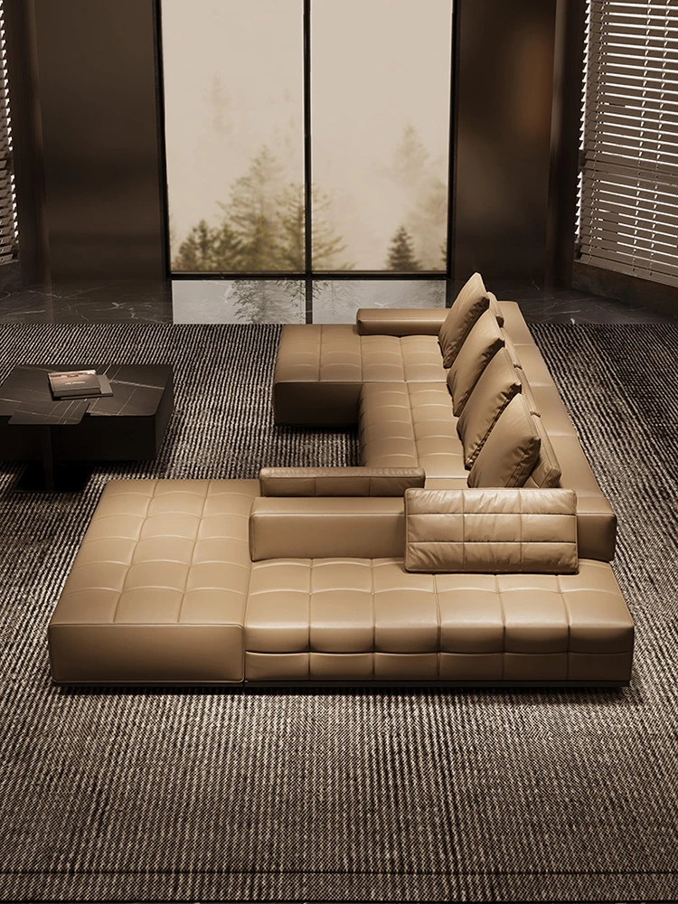 イタリアンリュクス本革ロジャー デザイナーのミニマリスト大平面直角コンビネーション牛革ソファ - 洗練されたデザインで、リビングに上質な空間を演出します!