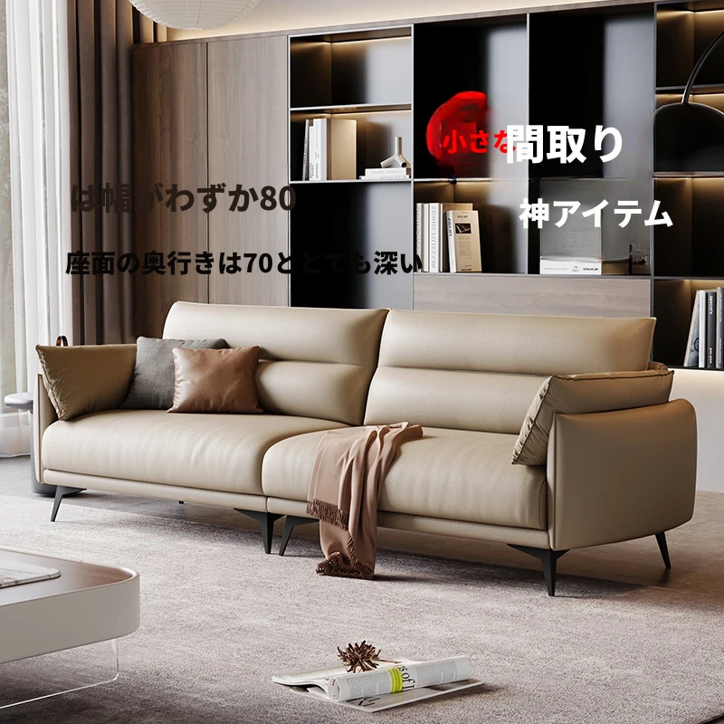 80cm幅 幅広な本革リビングストレートソファ シンプルでスタイリッシュな1008真皮ソファ 小さなスペースにもぴったりな高級イタリアンミニマリズムデザイン