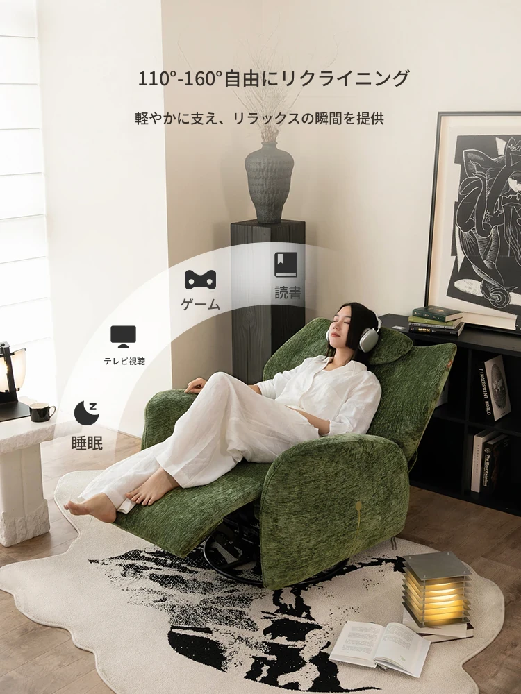 【香港送料無料】至高のリクライニングスペースソファ!マルチ機能搭載、マッサージ&ロッキング機能付きの快適な一人用チェア。寝室や作業に最適なリラックス空間を提供します!