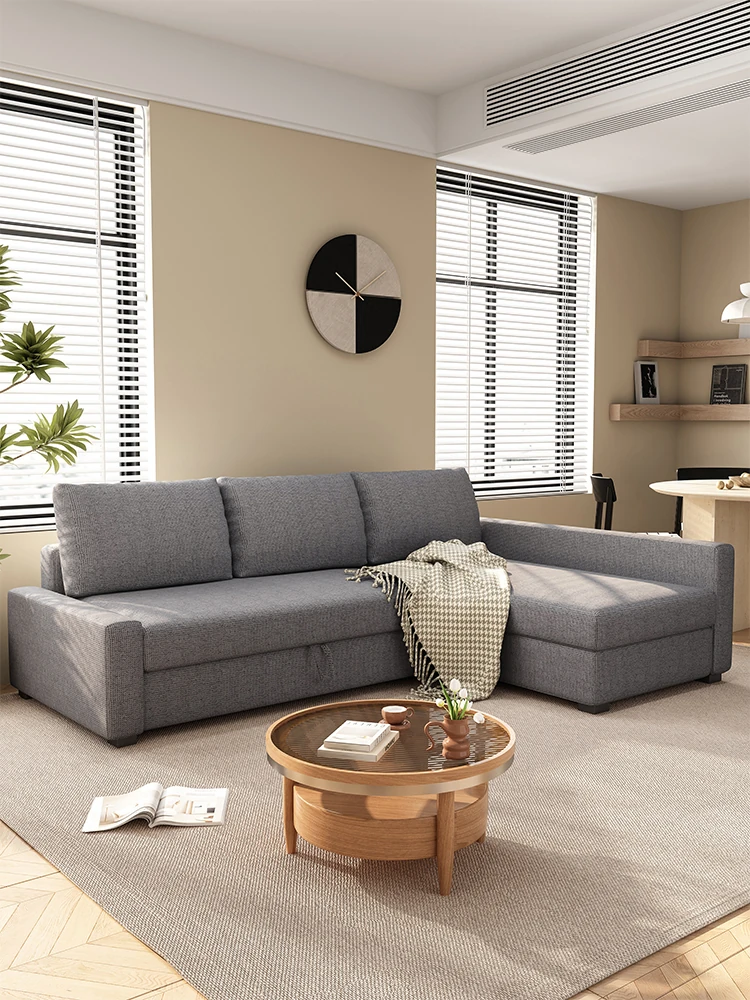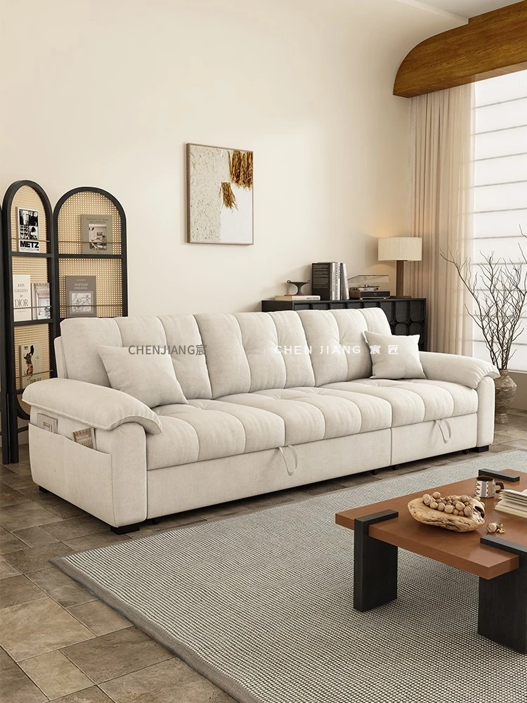 コットンリネン製の多機能折りたたみソファベッド - フェイスタイプで座り心地抜群!小型リビングにぴったりの収納機能付き伸縮式引き出しベッドで、スペースを有効活用!