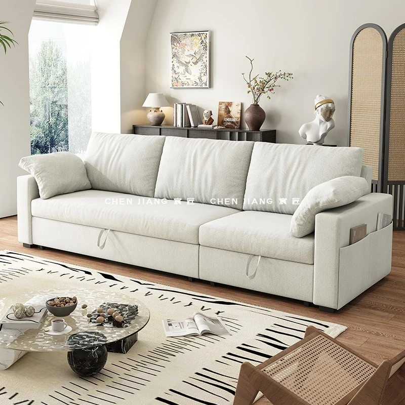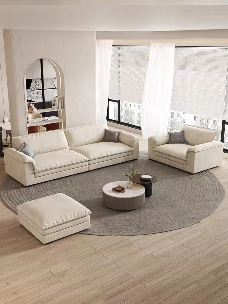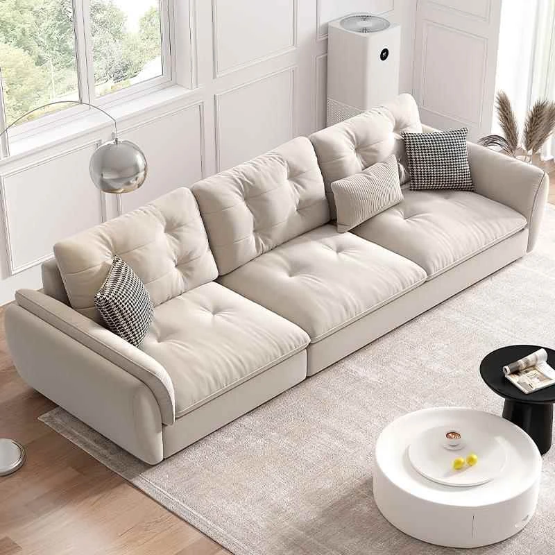 クリーム雲のようなソファ|モダンミニマリストデザイン|テクノロジー布製|3人掛け|小さなリビングに最適|軽やかなラグジュアリー|人気のインテリアスタイル