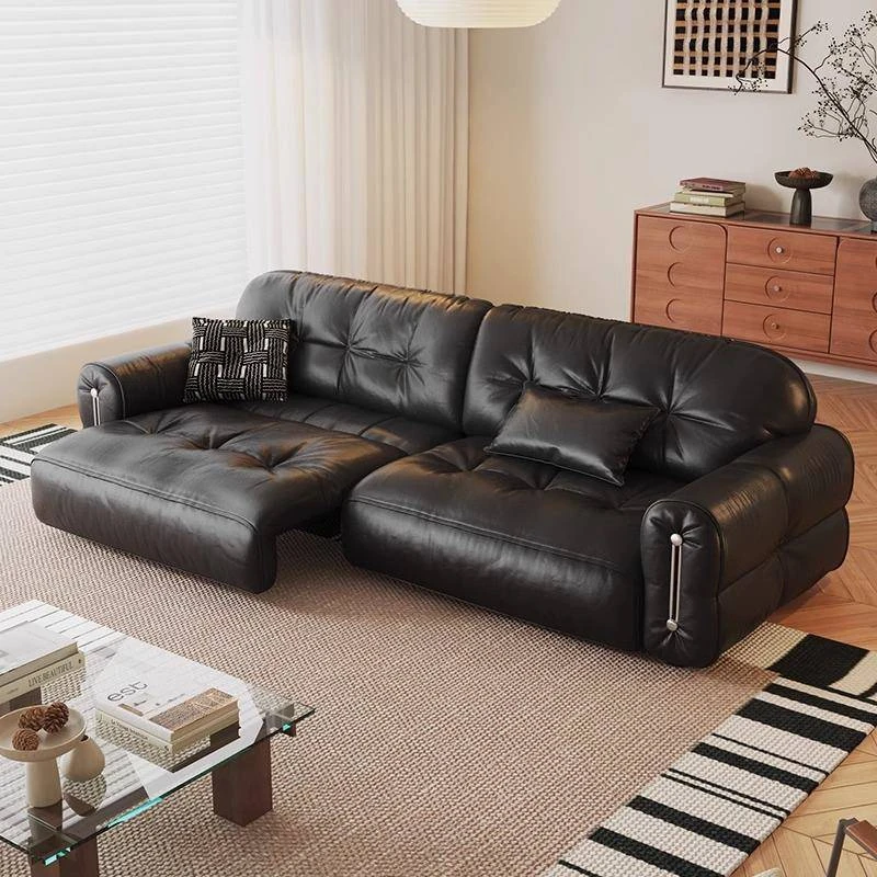 フランス風レトロ黒糖雲朵デザインの本革ソファ!リモコン操作で伸縮自在、電動機能搭載のソファベッド一体型。快適さとスタイルを兼ね備えた贅沢な空間を実現!