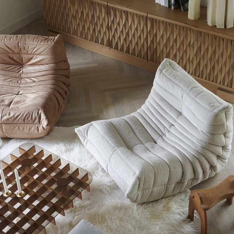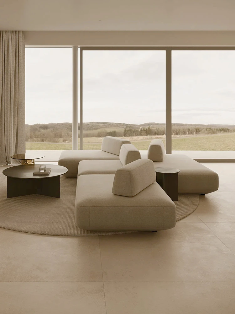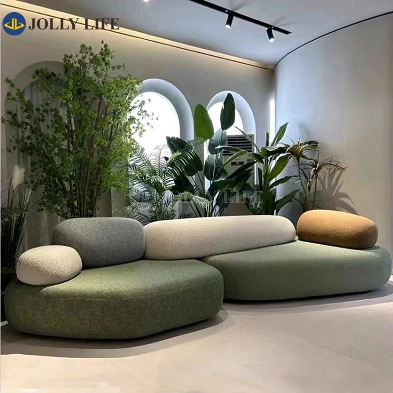 イタリアンラグジュアリーのモルソデザイン、自由自在に組み合わせ可能なクリエイティブなコブ石形状ソファ。エレガントなクリームトーンの布製で、あなたのリビングをスタイリッシュに演出します!