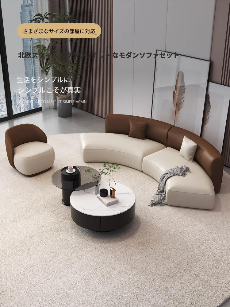 2025年新作!モダンなシンプルデザインのアーチ型ソファ - イタリアンスタイルのデザイナーが手がけた、リビングやブティック、美容院にぴったりなカシューナッツソファ。快適さとスタイルを兼ね備えた一品!
