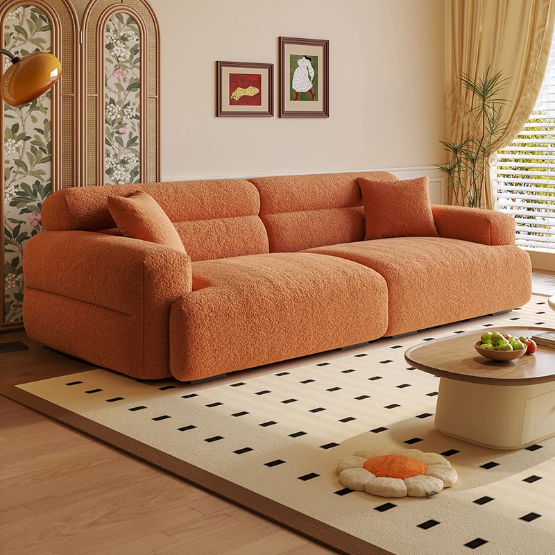 French Cream-Style Toasted Fabric Sofa - Minimalist Design for Living Rooms, Perfect for Apartments and Small Spaces, Cozy Lamb Fleece Straight Sofa for Relaxation
