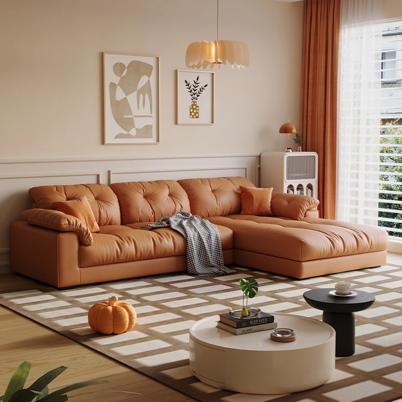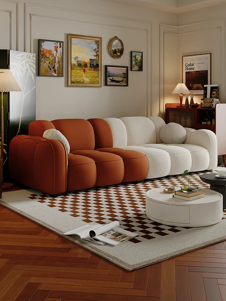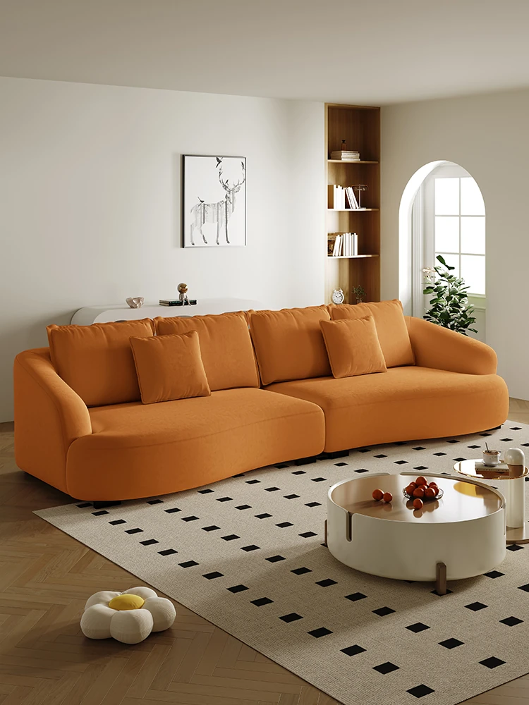 French Cream Style 2025 New Cashew Fabric Sofa - Modern Minimalist Curved Sofa for Small Living Rooms