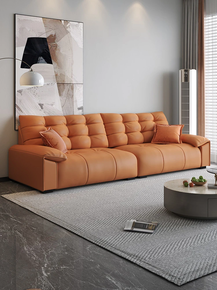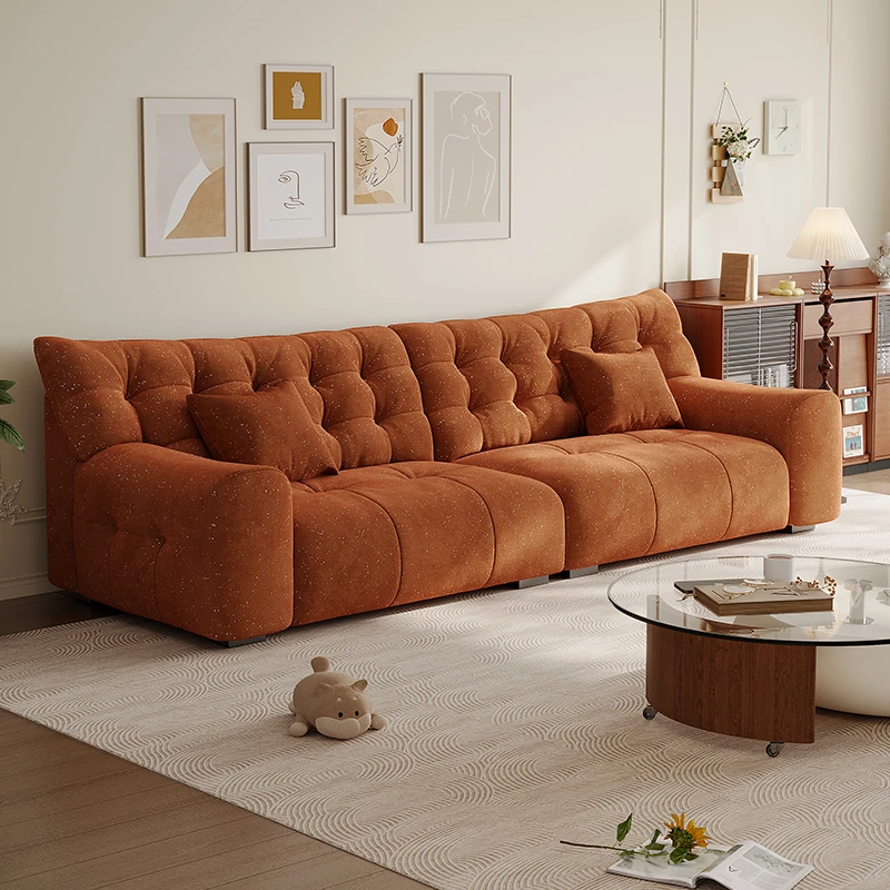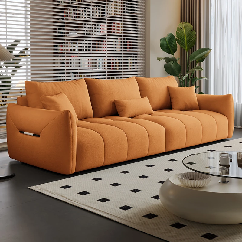 2025 New Cream-Style Fabric Sofa - Modern Minimalist Designer Luxury Biscuit Sofa for Living Room, Straight-Line Design