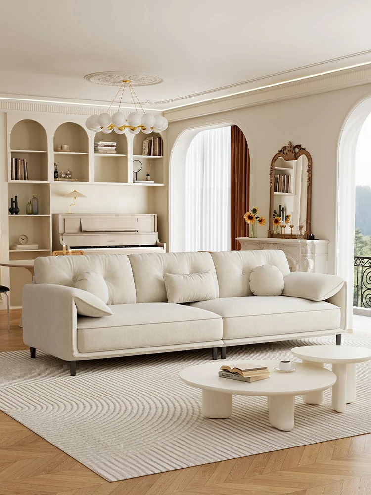 French Creamy Chenille Sofa with Starry Sky Design - Trendy Minimalist Living Room Furniture for 2025, Perfect for Modern Homes!