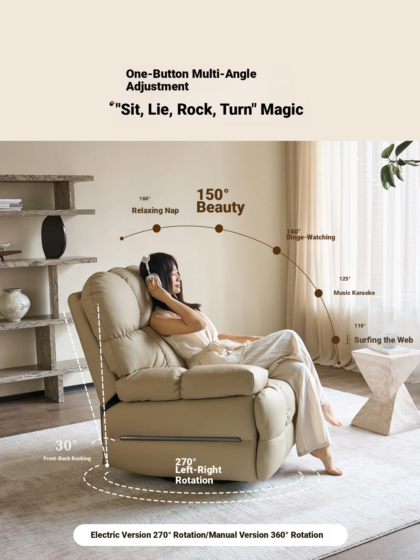 Casachic Modern Minimalist Single Sofa - Zero Gravity Multi-Functional Electric Rotating Leather Recliner for Ultimate Comfort and Relaxation