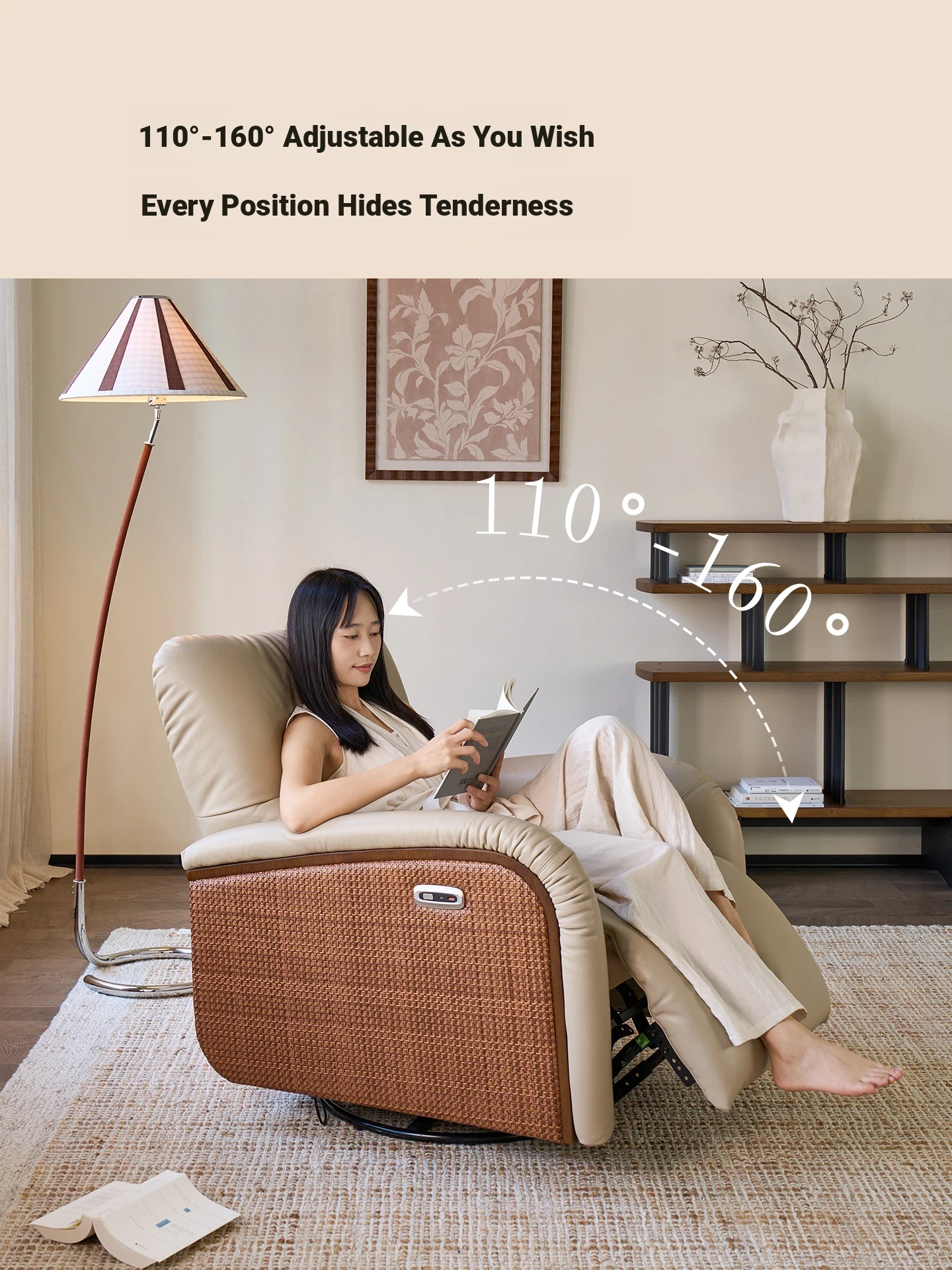 Casaqi Premium Leather Electric Recliner Chair - Retro High-End New Chinese Style Rattan Adjustable Genuine Leather Single Sofa, Multifunctional Comfort for Your Home