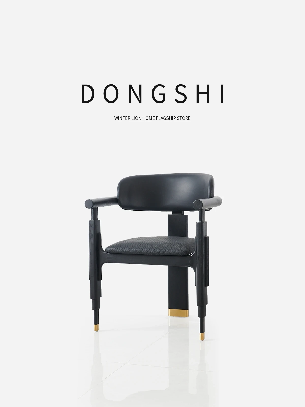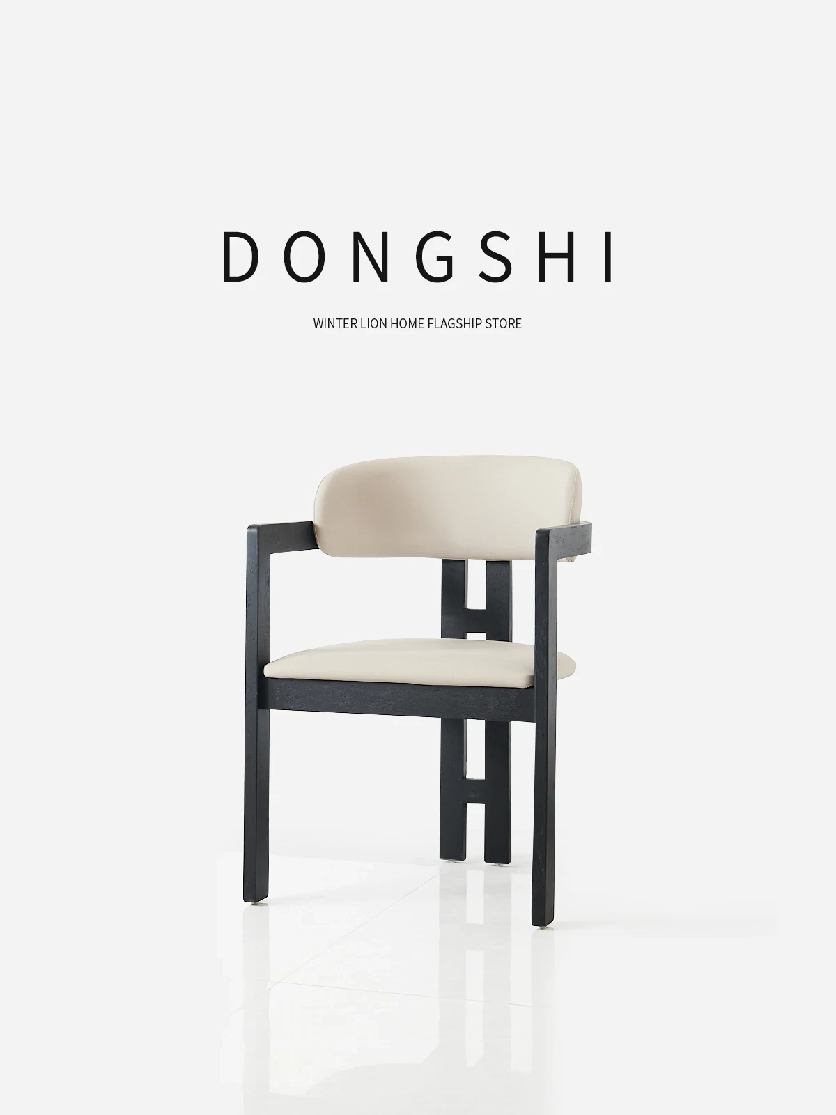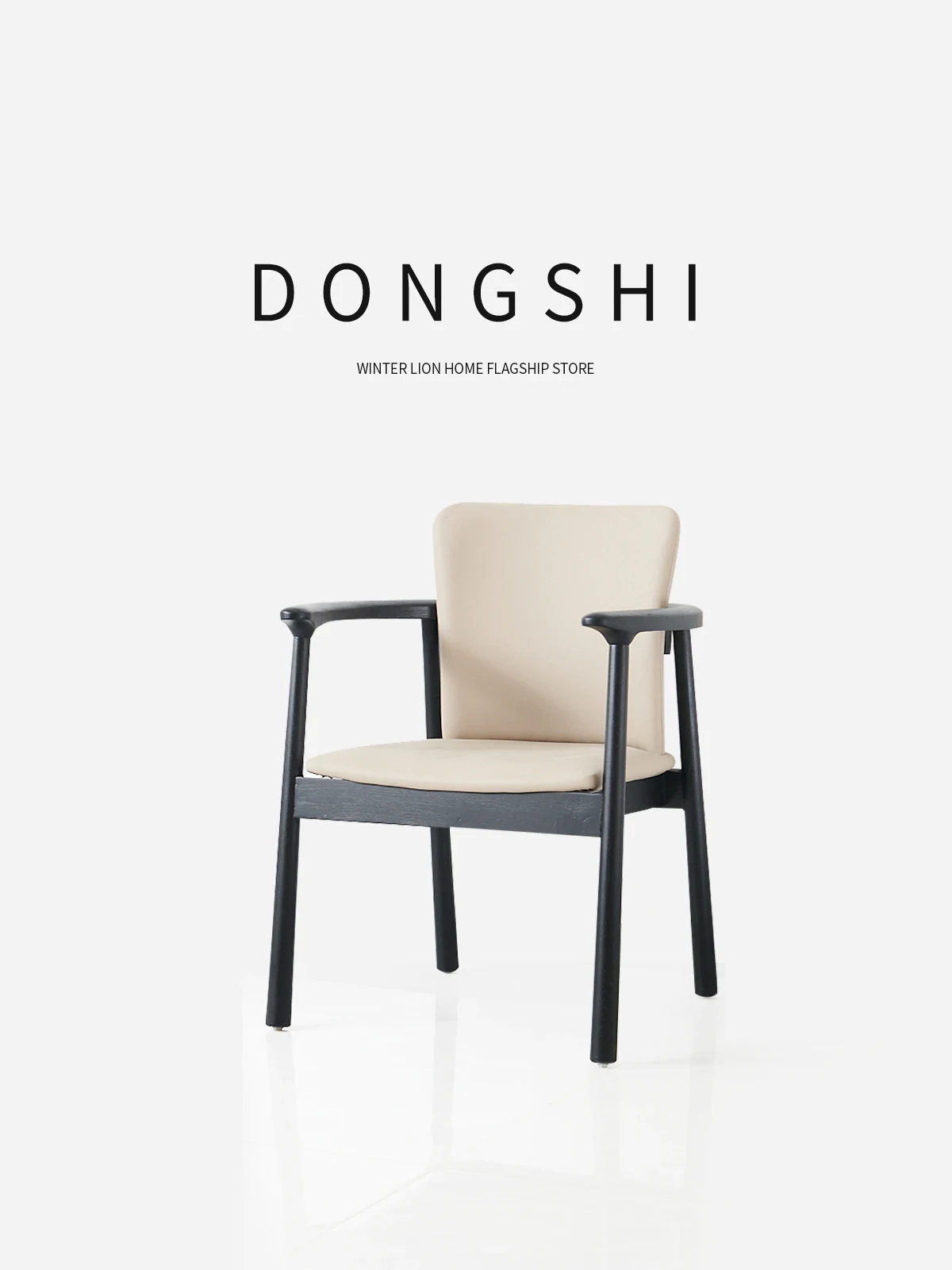 Italian Minimalist Dining Chair with Ash Wood Armrests - High-End Designer Solid Wood Backrest Leather Chair for Home Use, Perfect for Meeting Tables and Kitchen Islands
