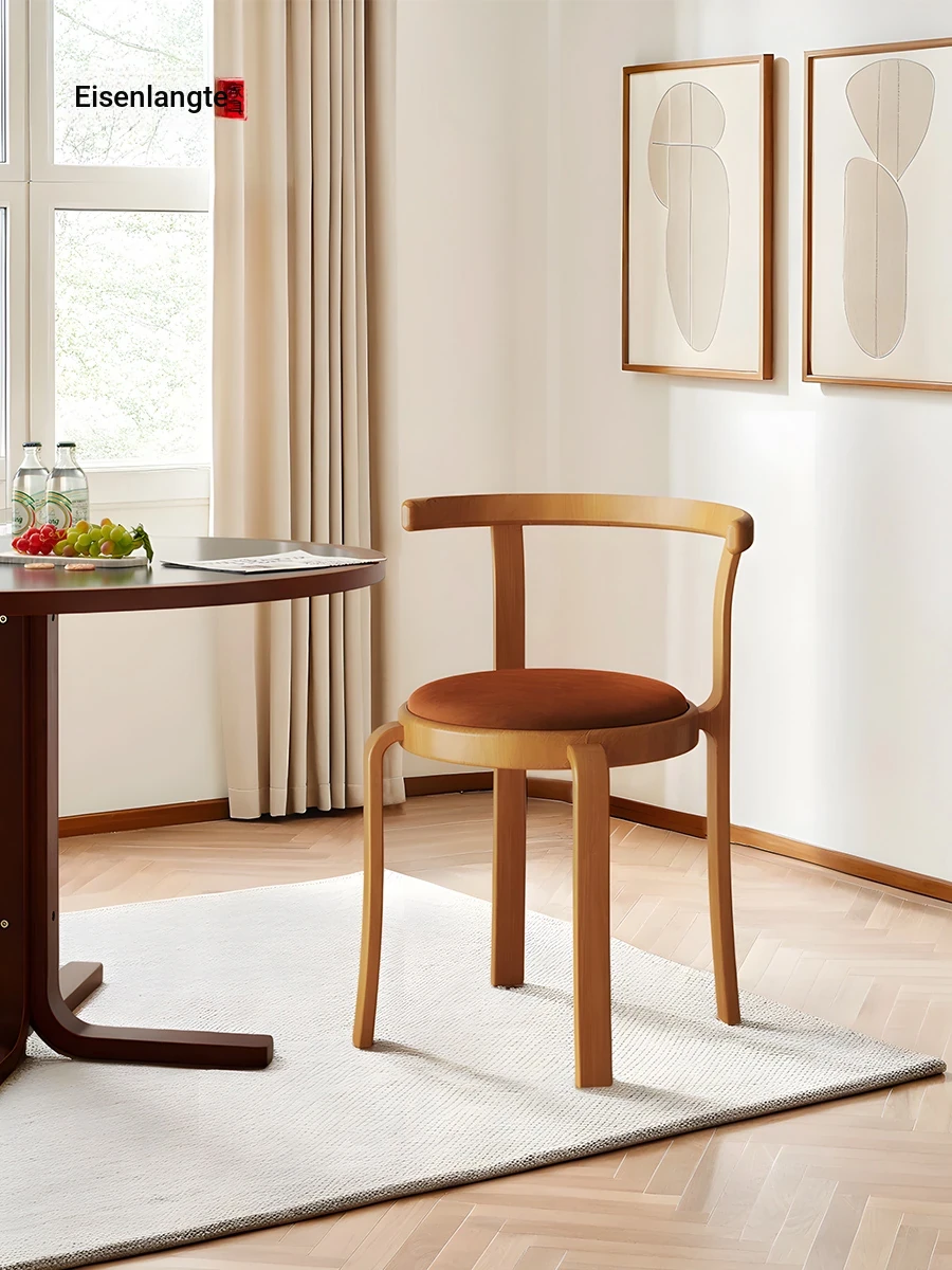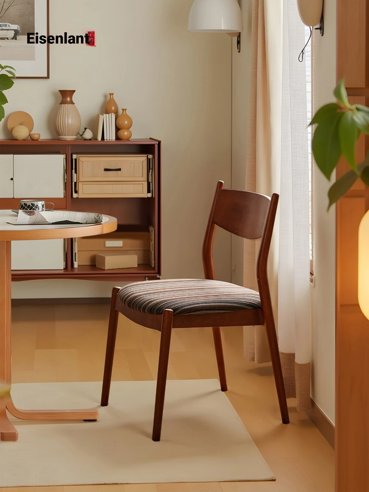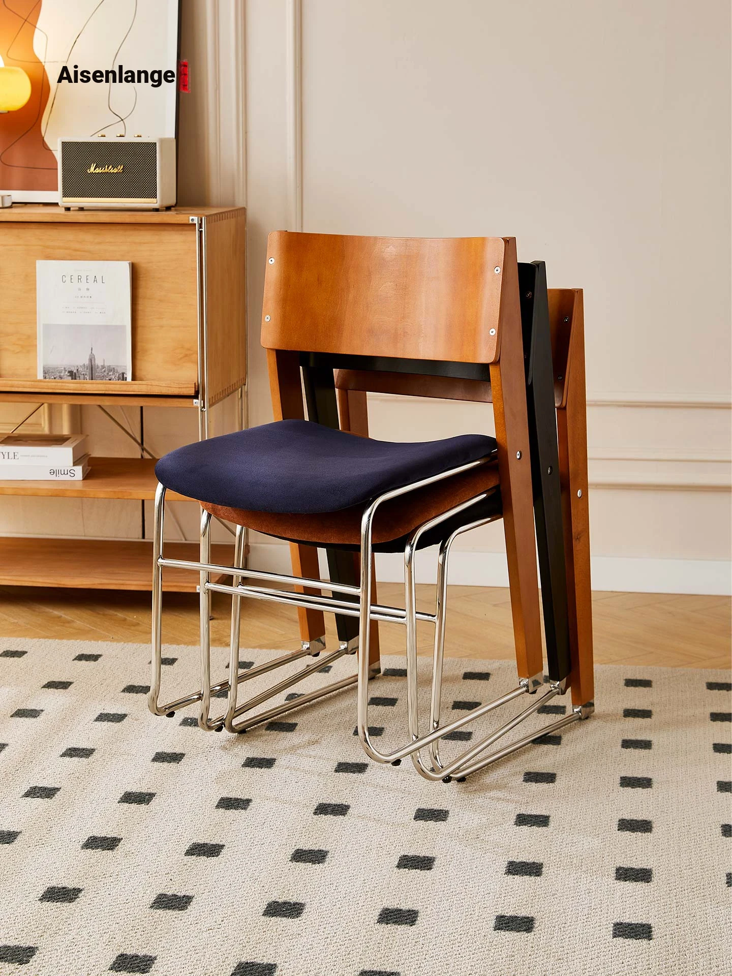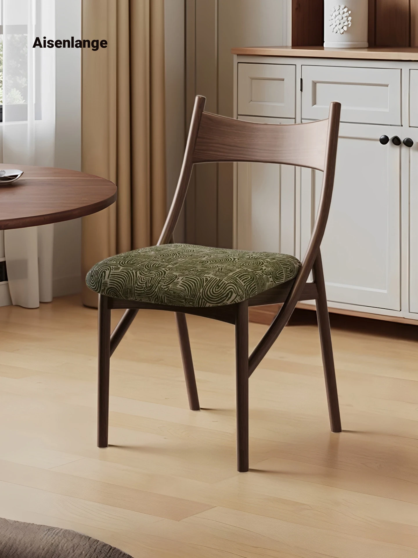 Aisenlongte Vintage Solid Wood Dining Chair - Nordic Style Stackable Backrest Chair for Small Spaces, Ideal for Home, Study, and Dining Room