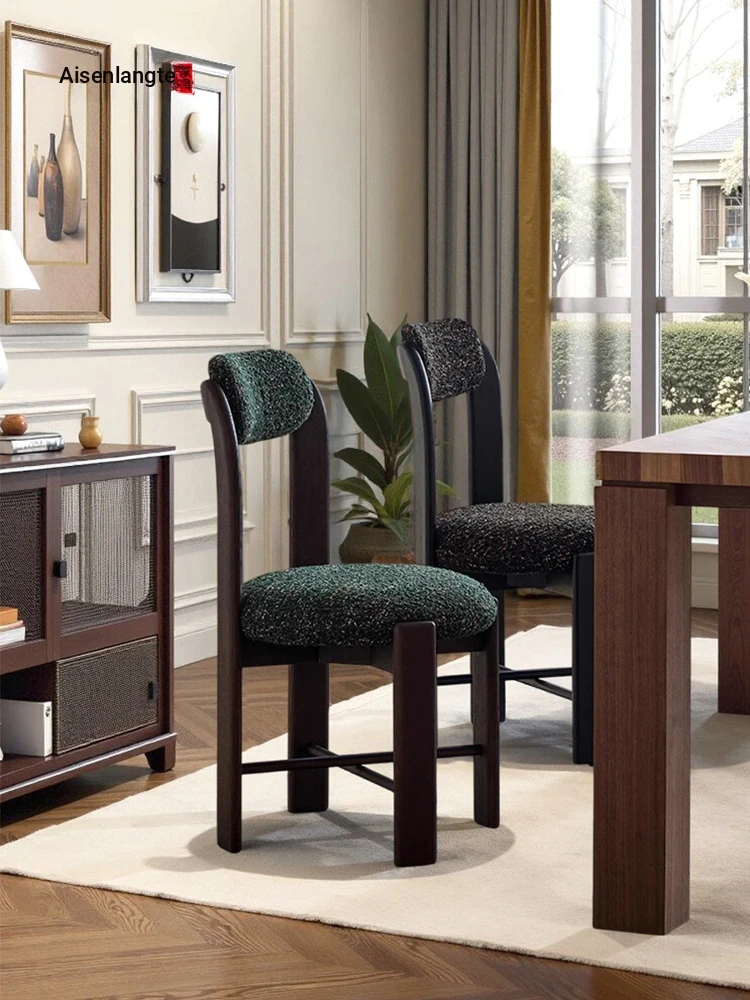 Aisen Longte French Vintage Dining Chair - Designer Solid Wood Backrest, Elegant Light Luxury Feel, Ash Wood Dining Table and Chair Set for Home Use