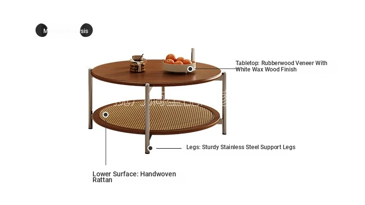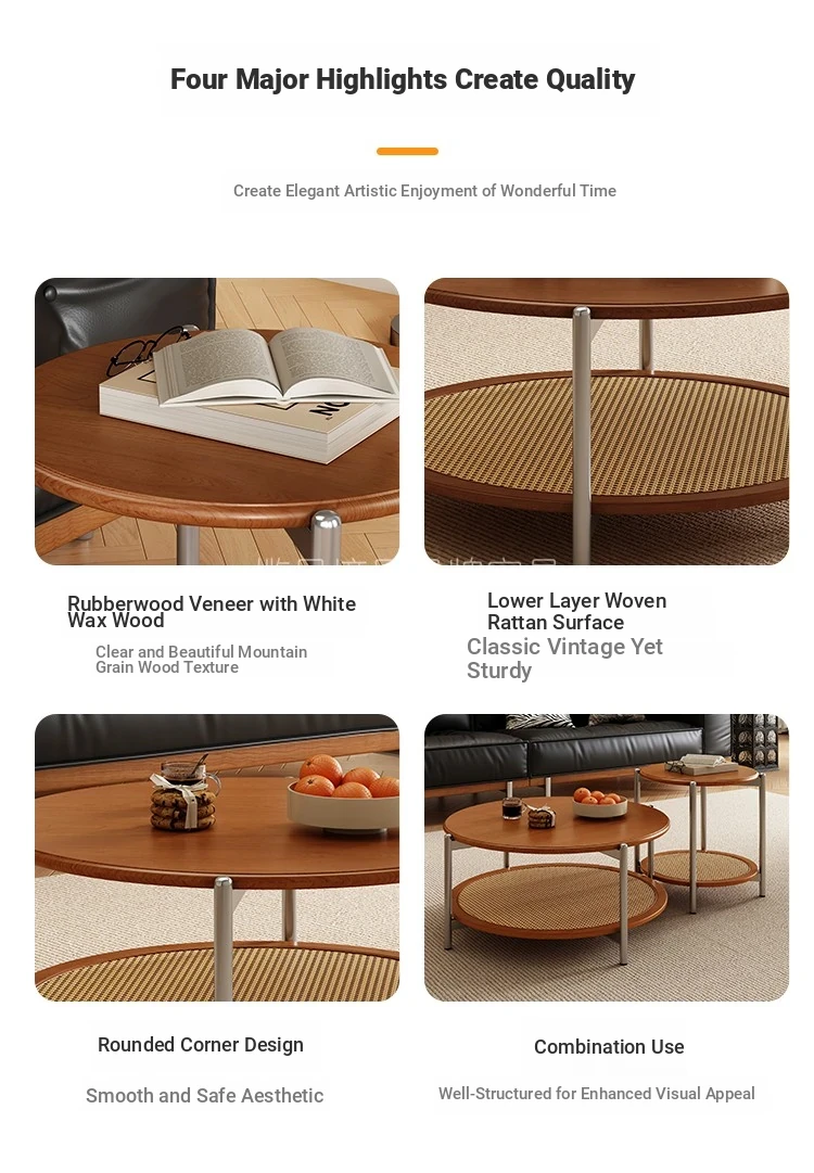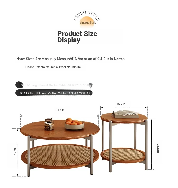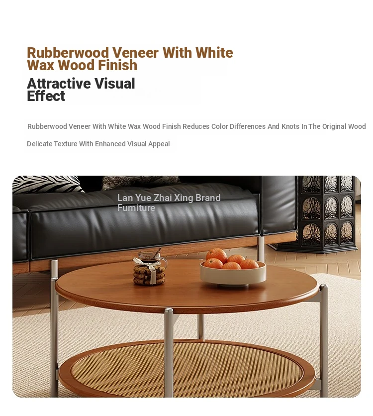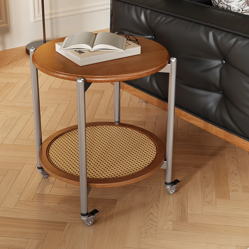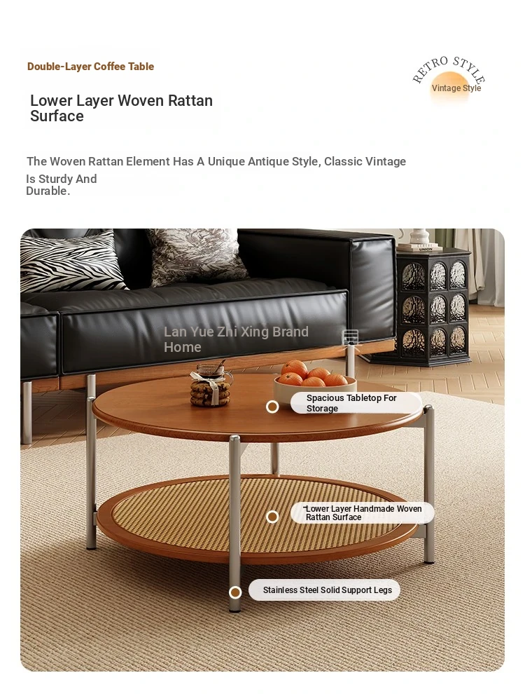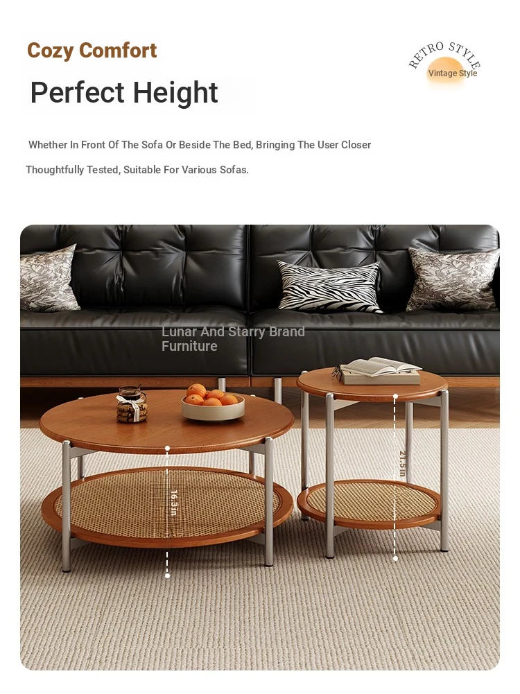 2025 New French Vintage Solid Wood Round Coffee Table - Designer Wicker Side Table for Living Room, Home Use