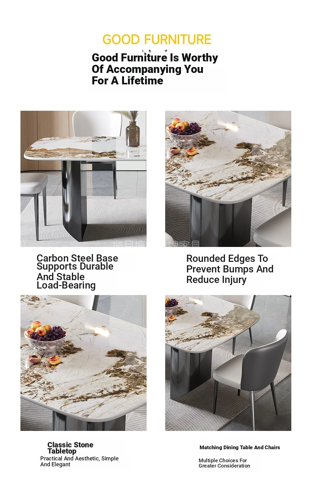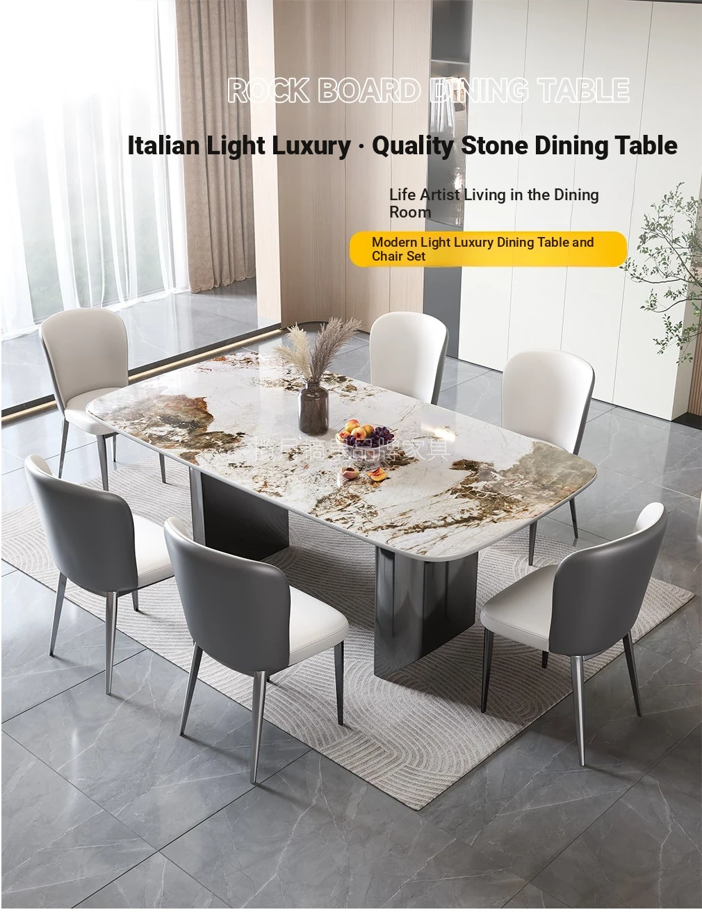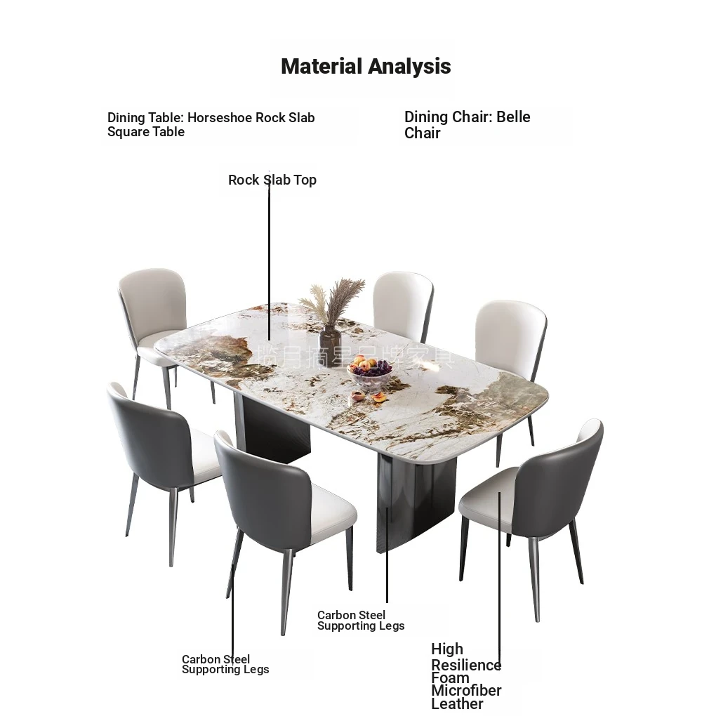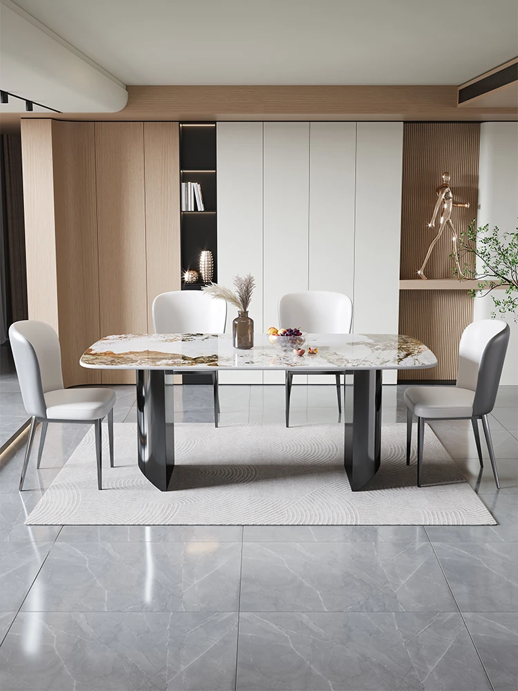 2025 New Italian Minimalist Rock Plate Dining Table Set - Stylish Rectangular Table and Chairs for Small Spaces, Perfect for Modern Homes