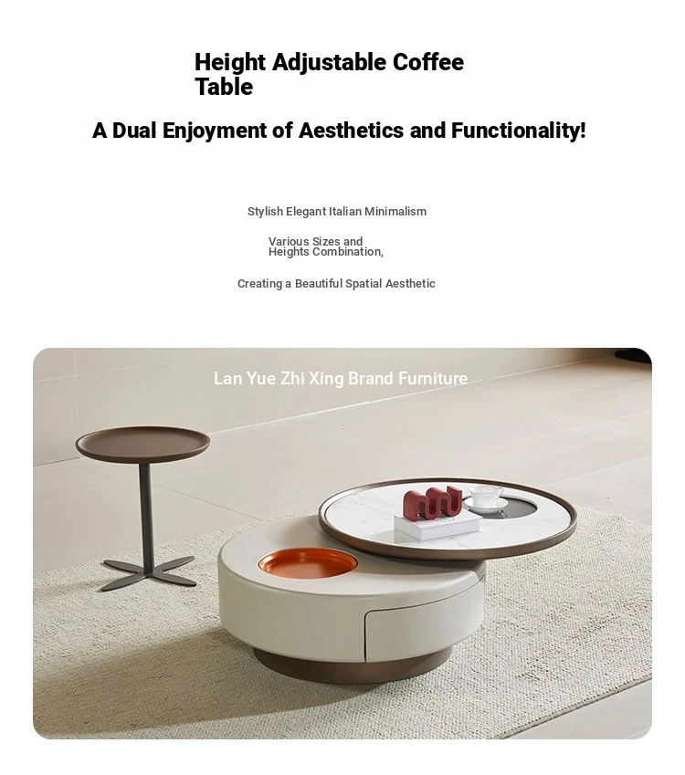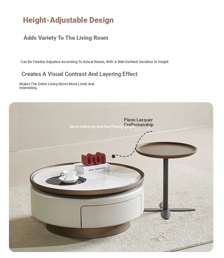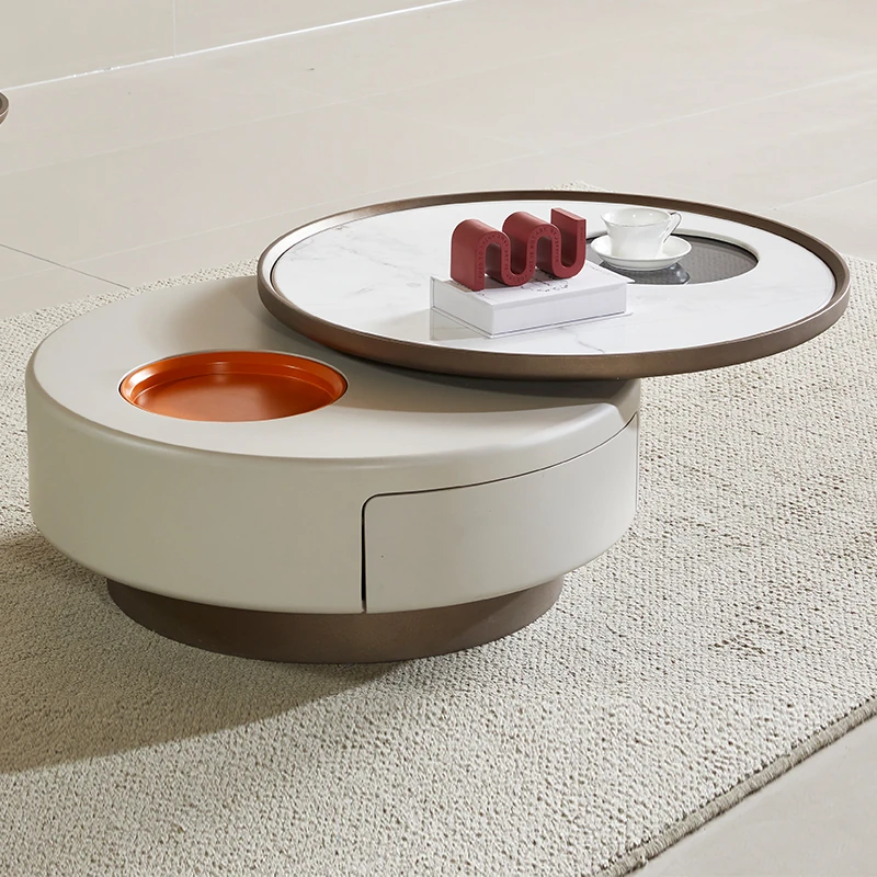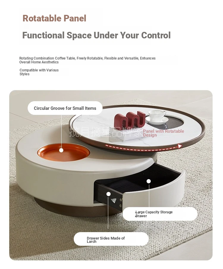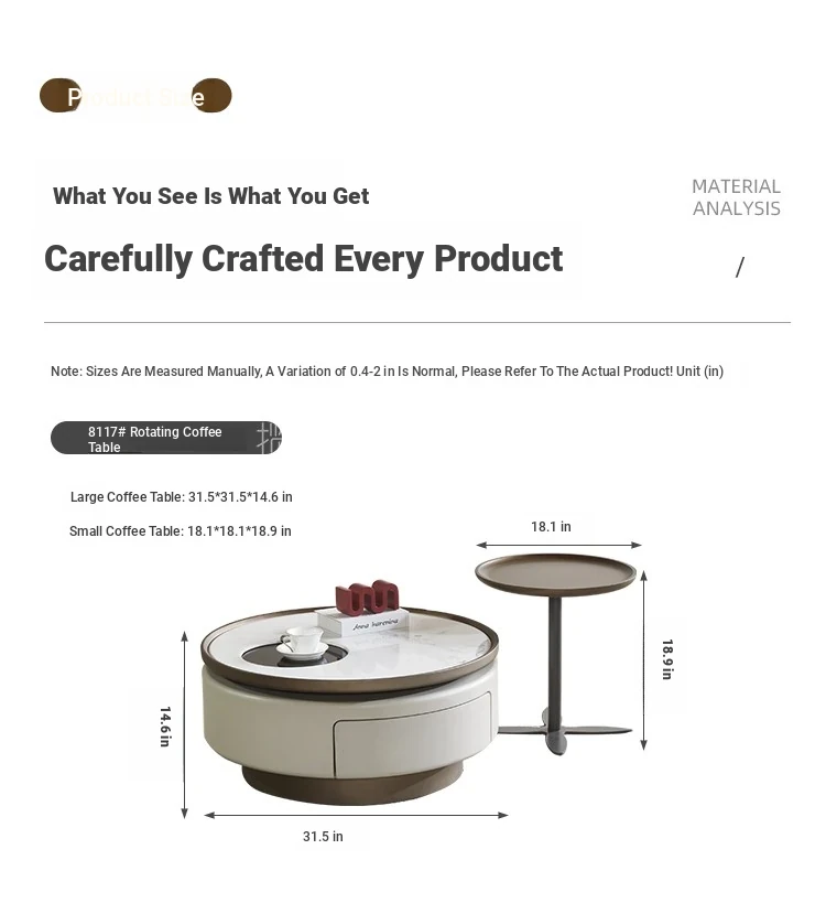 31.50in Rotating Coffee Table + 18.11in Small Table [Milk White + Coffee Color]