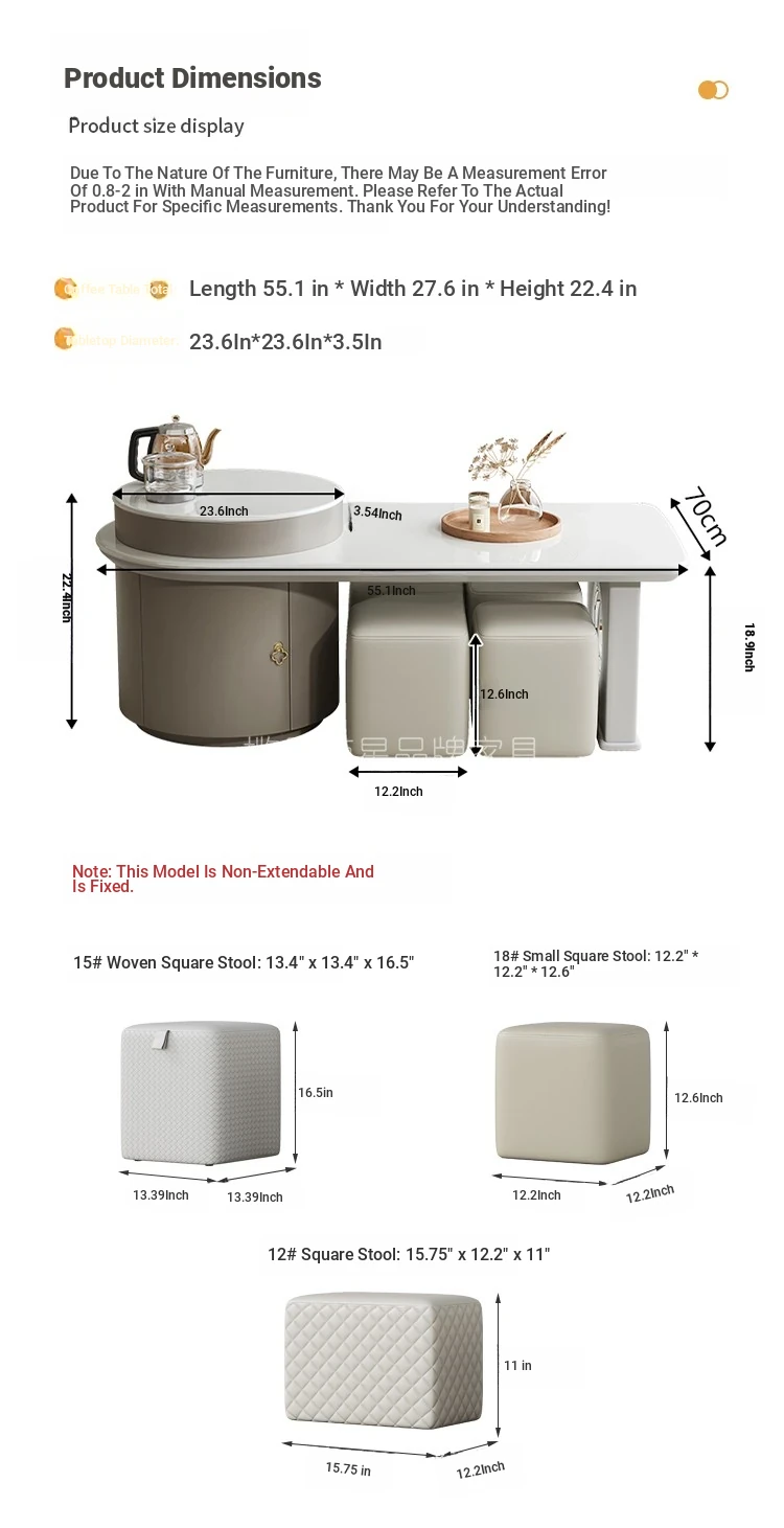 【 55.12in 】Kung Fu Tea Table + Large Square Stools*2