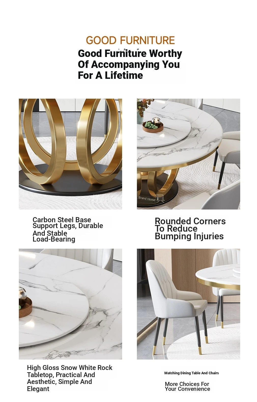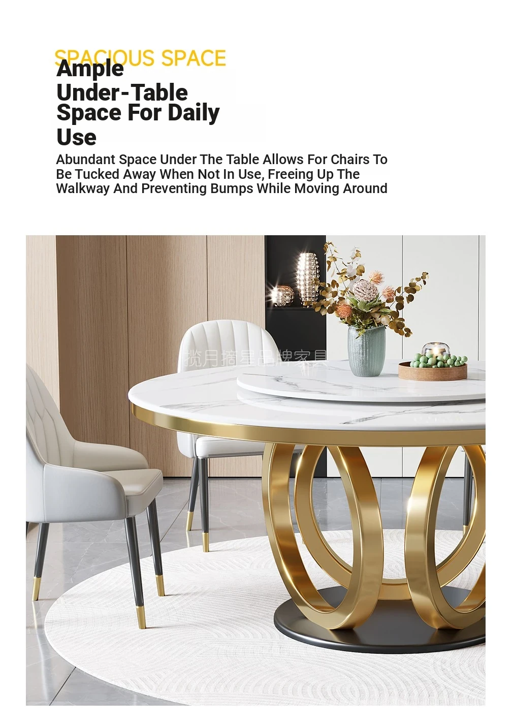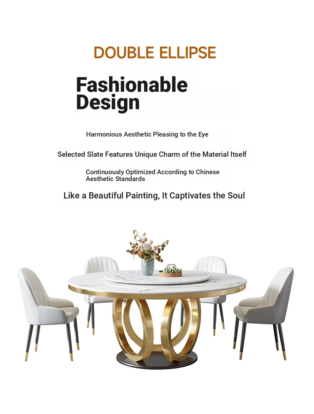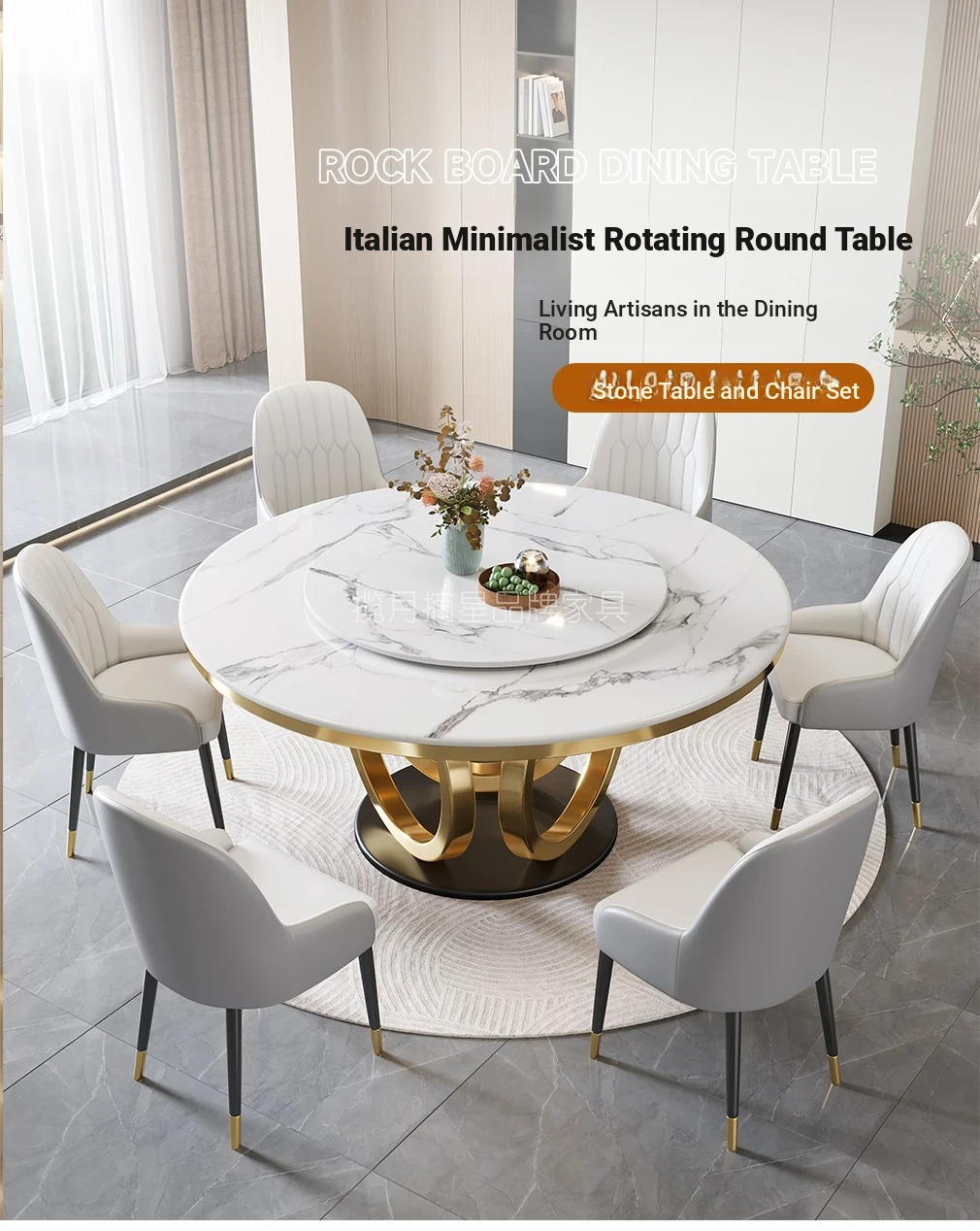2025 New Modern Luxury Designer Round Dining Table Set with Rotating Base for Small Apartments - Stylish and Functional Home Décor