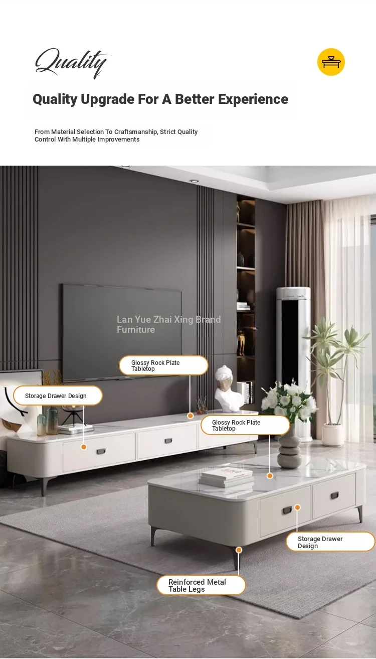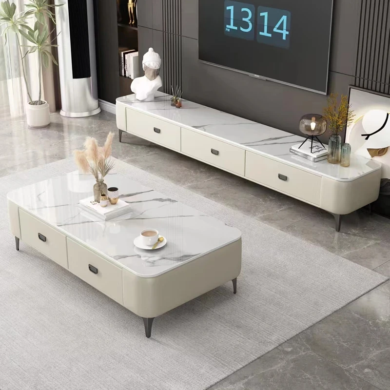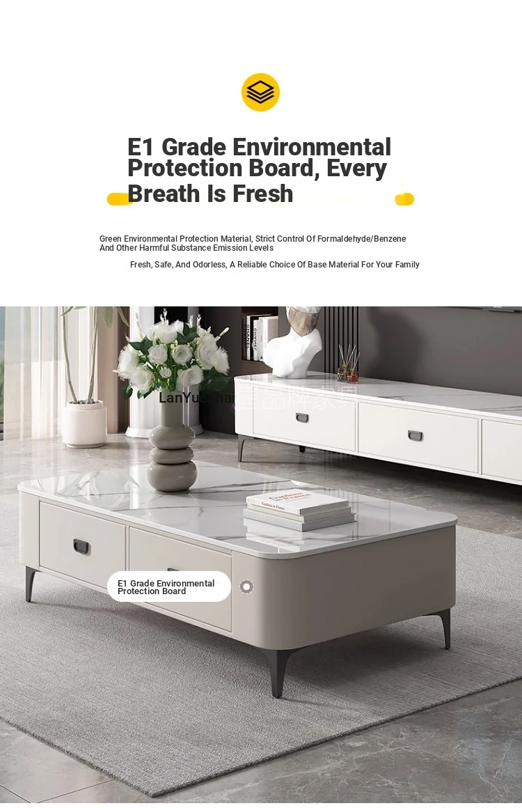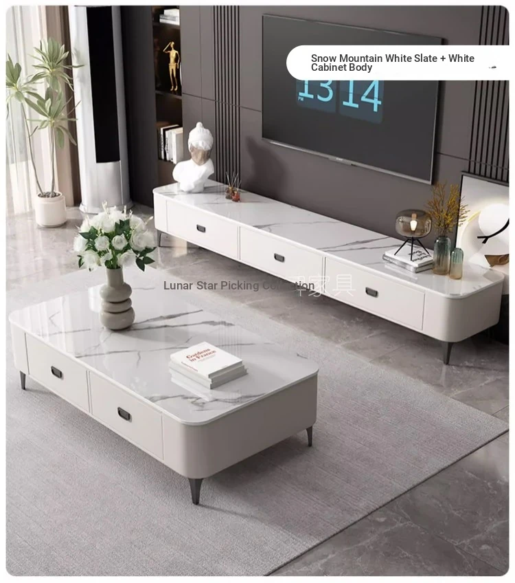 2025 New Stylish Minimalist Rock Plate Coffee Table for Living Room - Elegant Home Use, Perfect for Small Spaces, TV Stand Combo