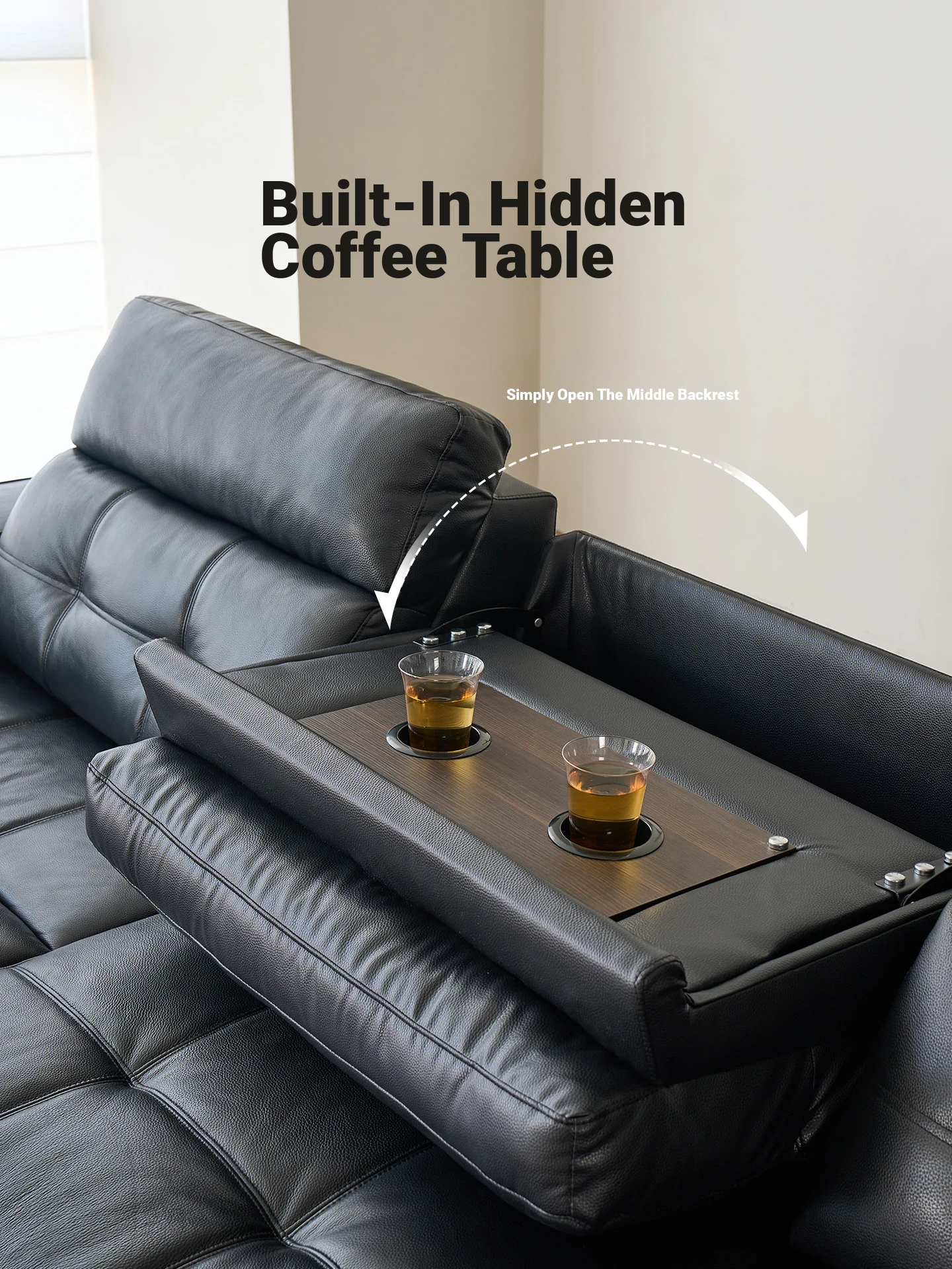 [Thickened Ecological Leather] 167.72in Big Three + Three Electric Telescopic + Hidden Tea Table