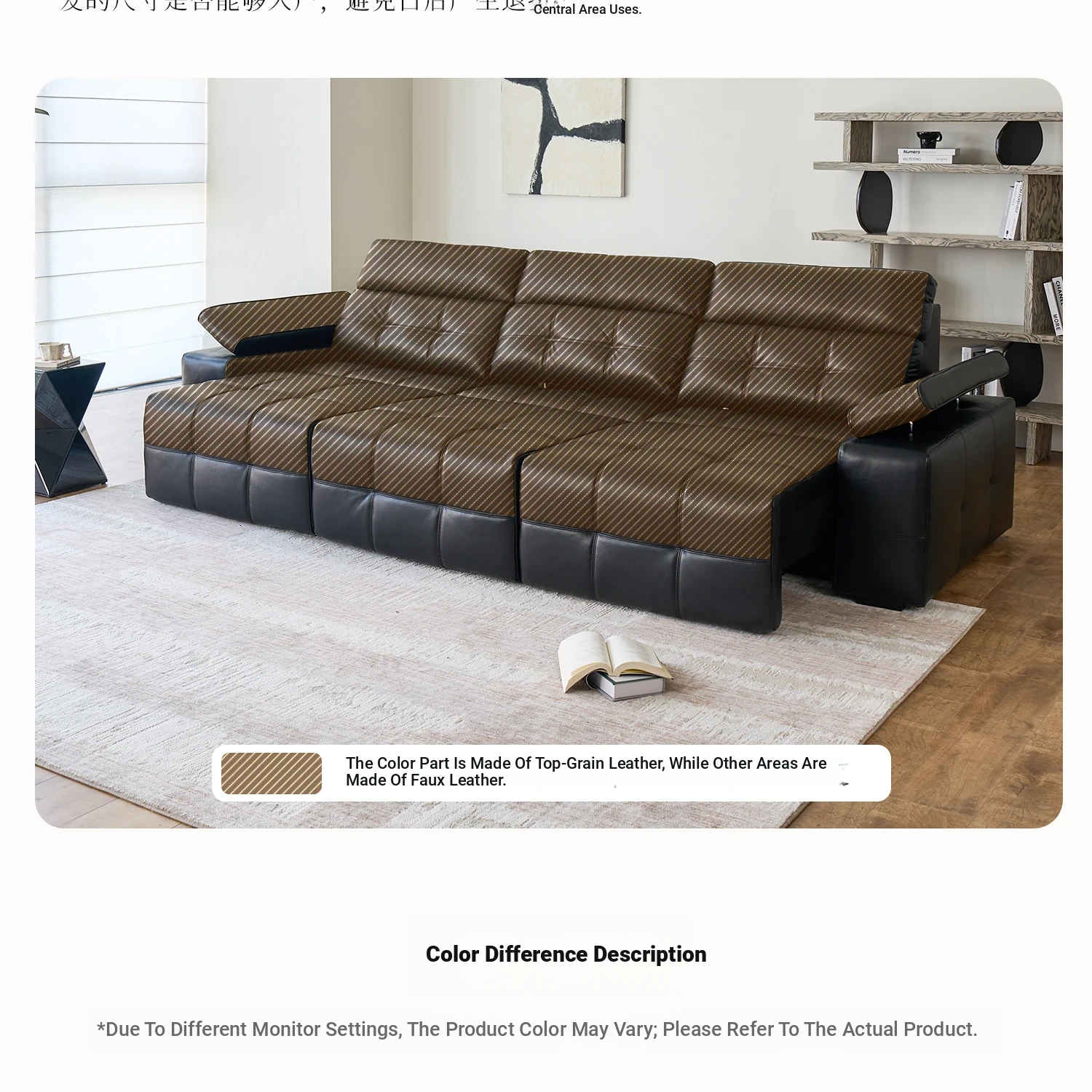[S-Class Fleshy Thick Break Head Layer Cowhide] 139.37in Medium Three + Three Electric Telescopic + Hidden Tea Table