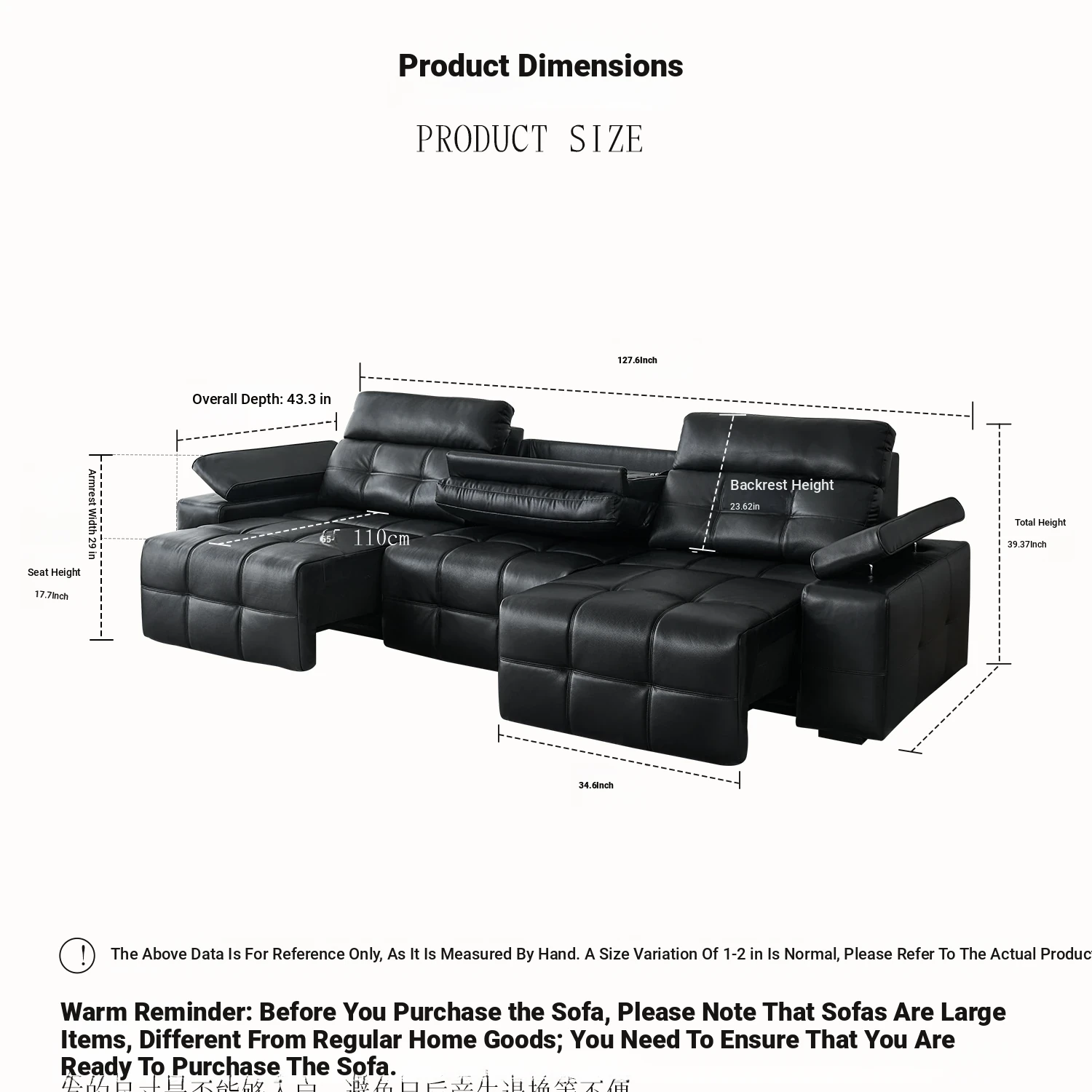 [Thickened Ecological Leather] 167.72in Large Three-person + Three-electric Telescopic