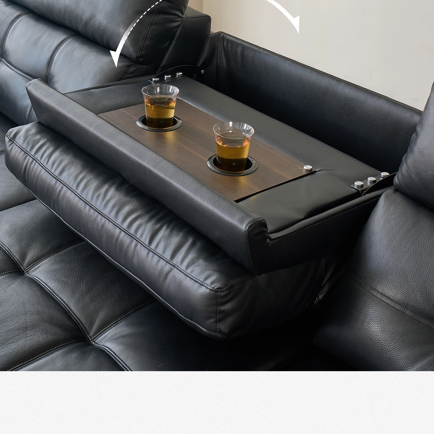 [Class S Fleshy Thick Break Head Layer Cowhide] 167.72in Large Three-person + Three Electric Telescopic + Hidden Tea Table