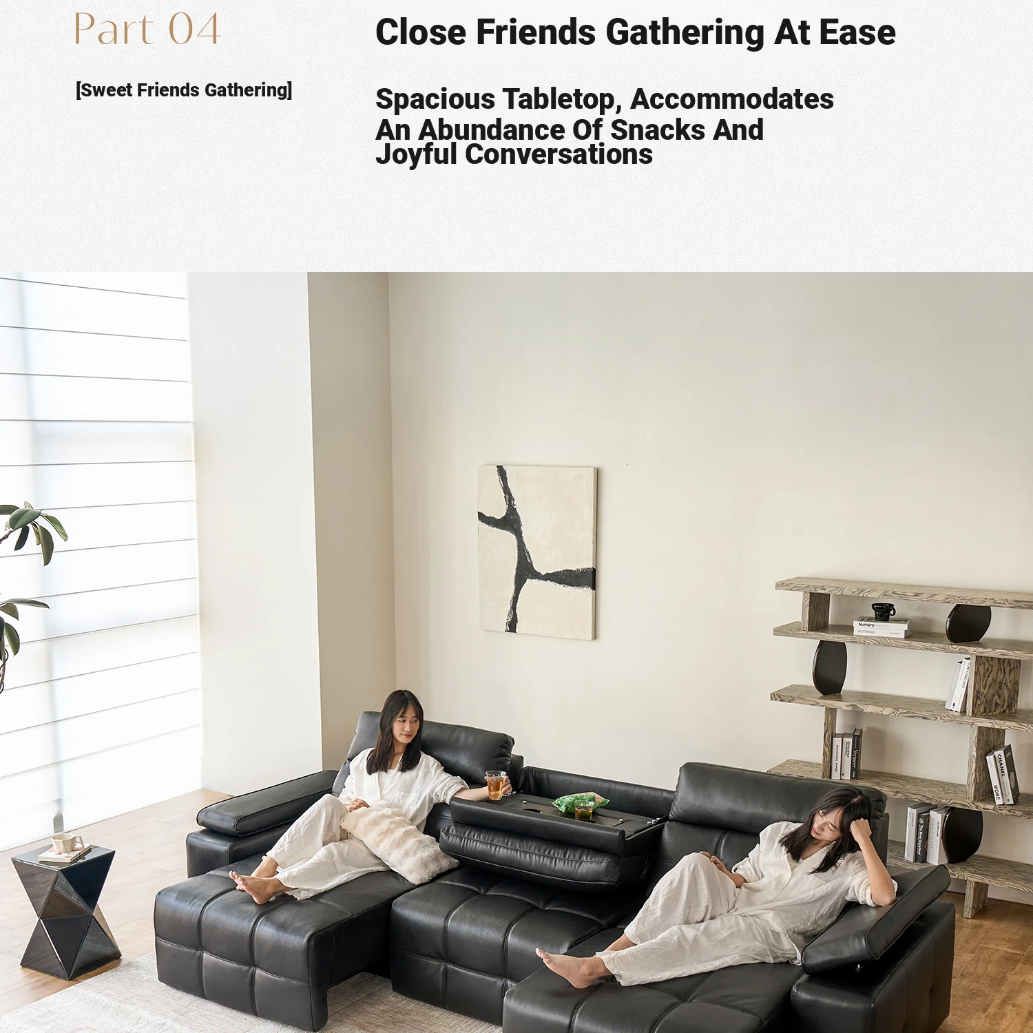 [Thickened Ecological Leather] 139.37in Medium Three + Three Electric Telescopic + Hidden Tea Table