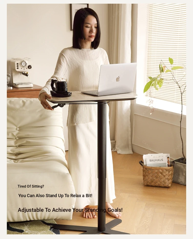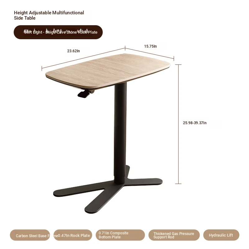 Casa Chi Liftable Side Table – Stylish Movable Nightstand with Premium Rock Board and Creative Solid Wood Design for a Luxurious Touch in Your Living Space