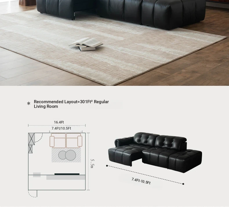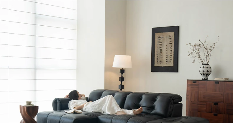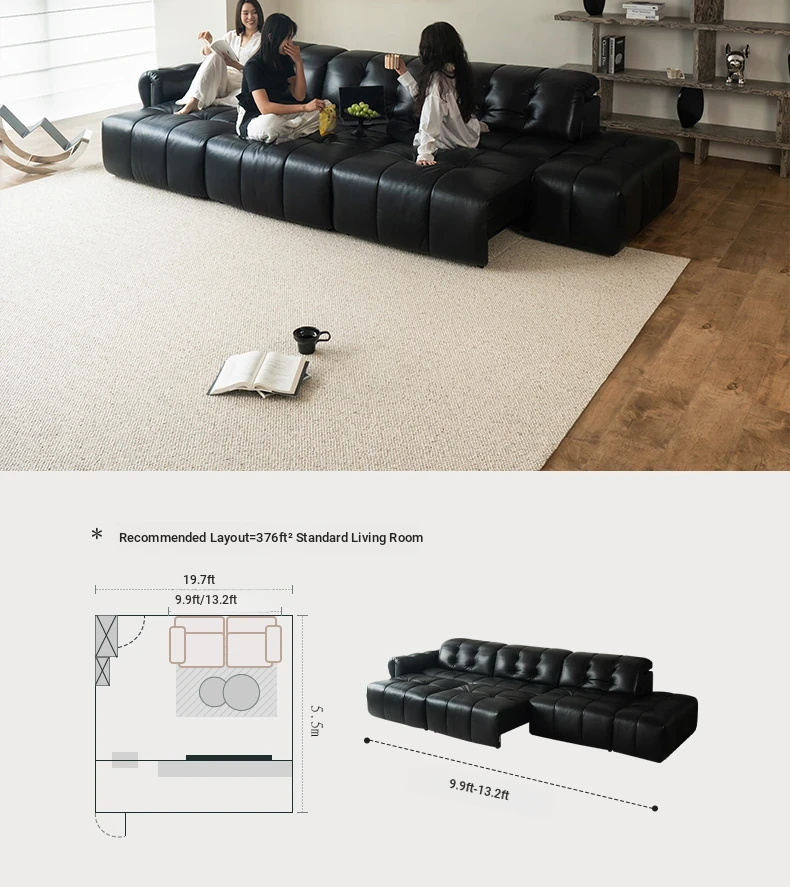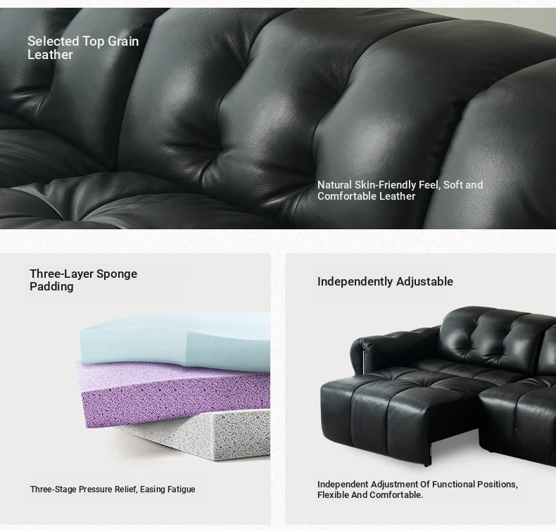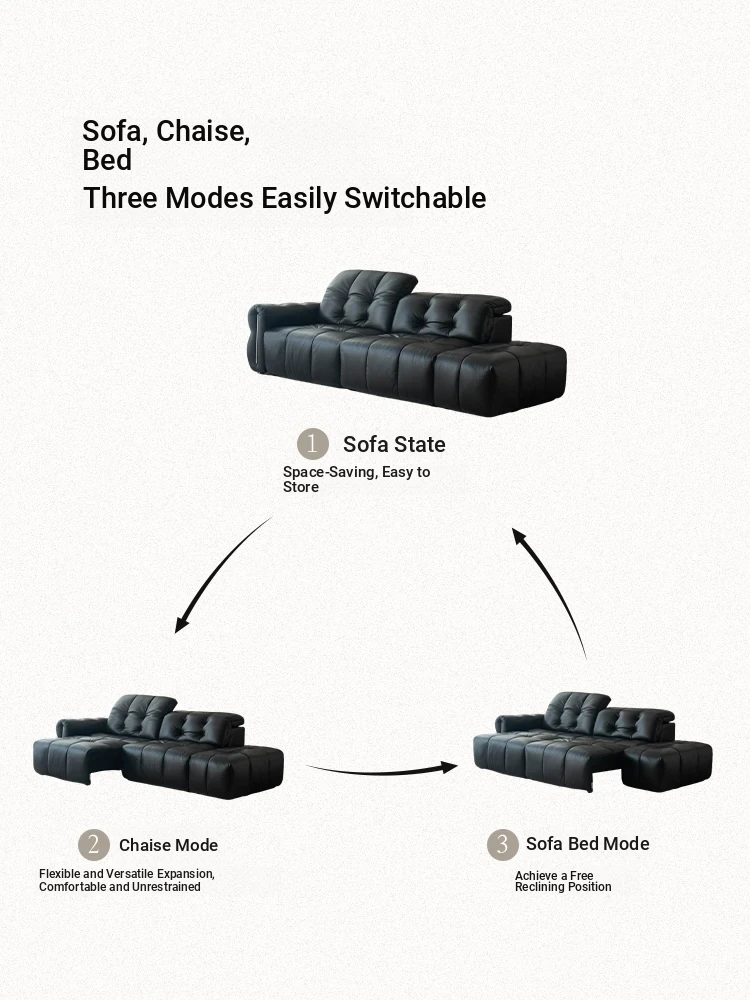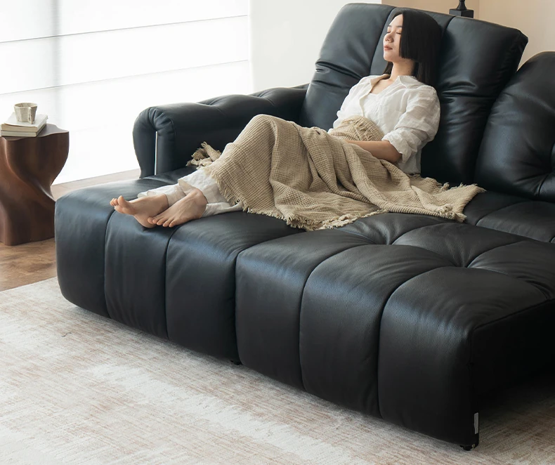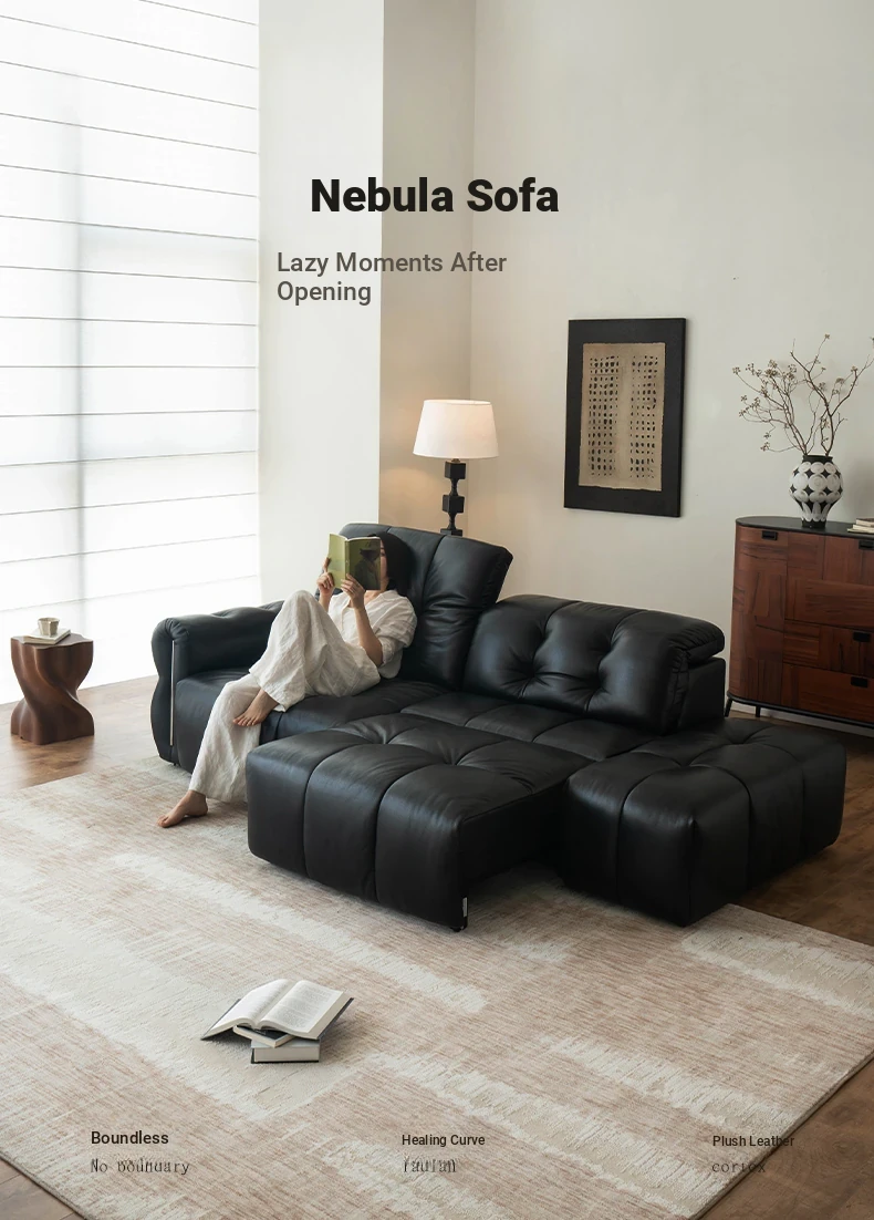 Casa Chi Nebula Electric Sofa - Luxurious Black Leather Futon with Vintage Charm, Adjustable and Space-Saving Design for Your Living Room