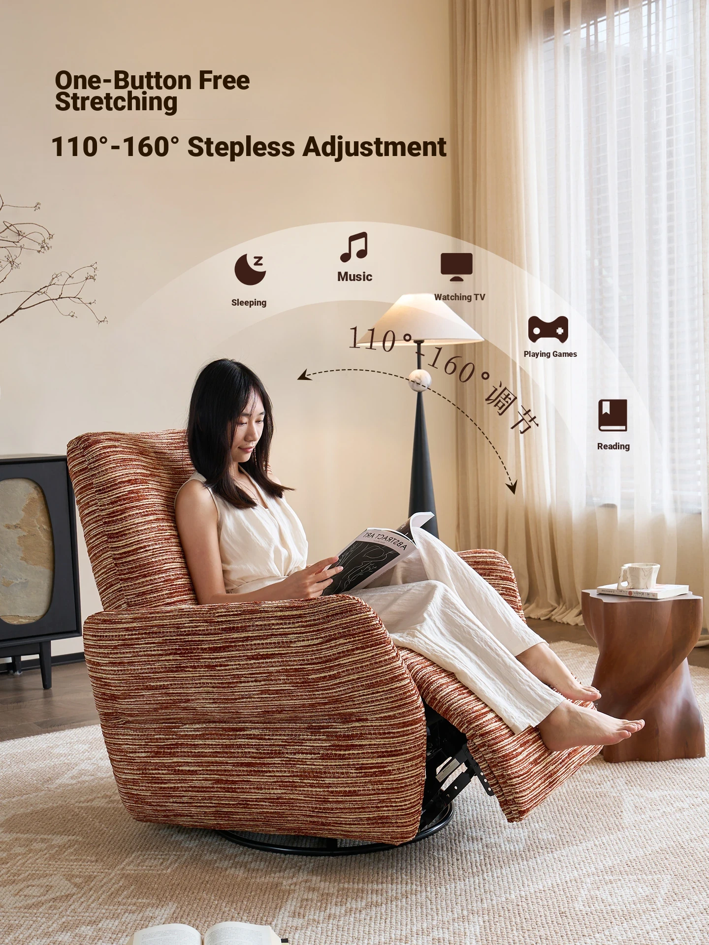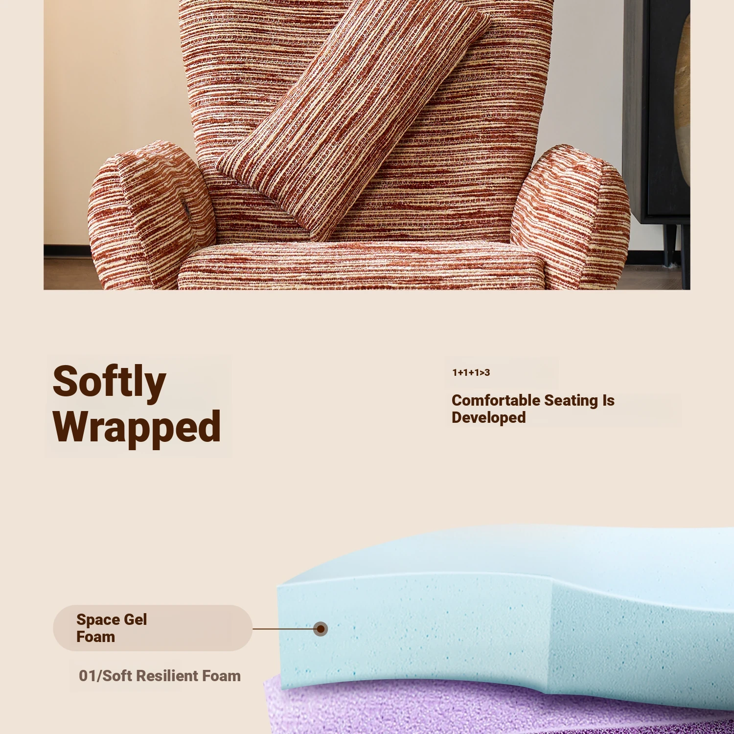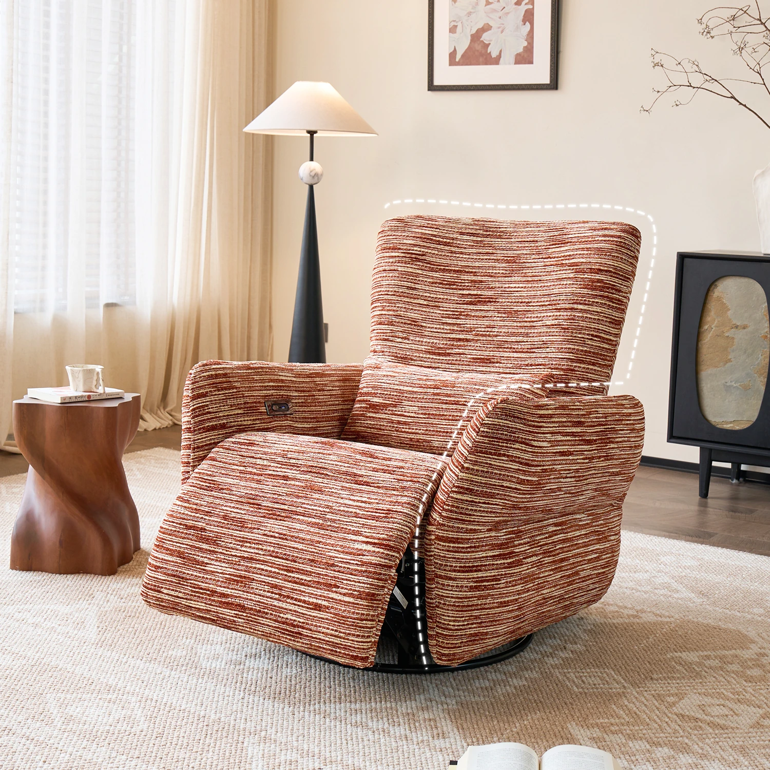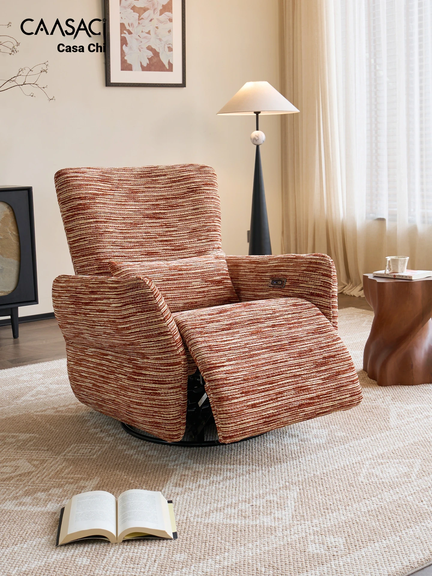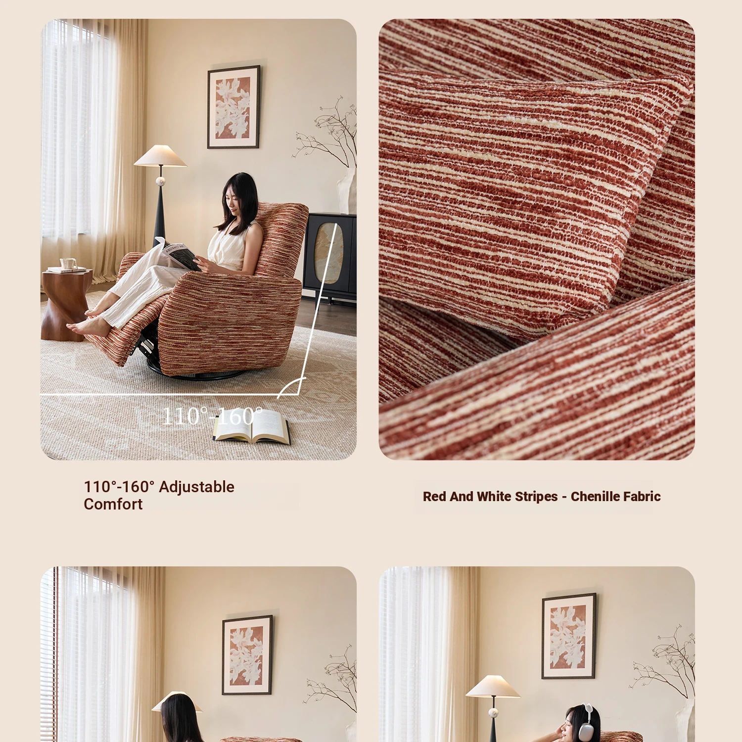 Casa Chi Retro Chenille Fabric Reclining Single Sofa - Versatile Electric Red Armchair for Small Spaces, Perfect for Relaxing and Sleeping