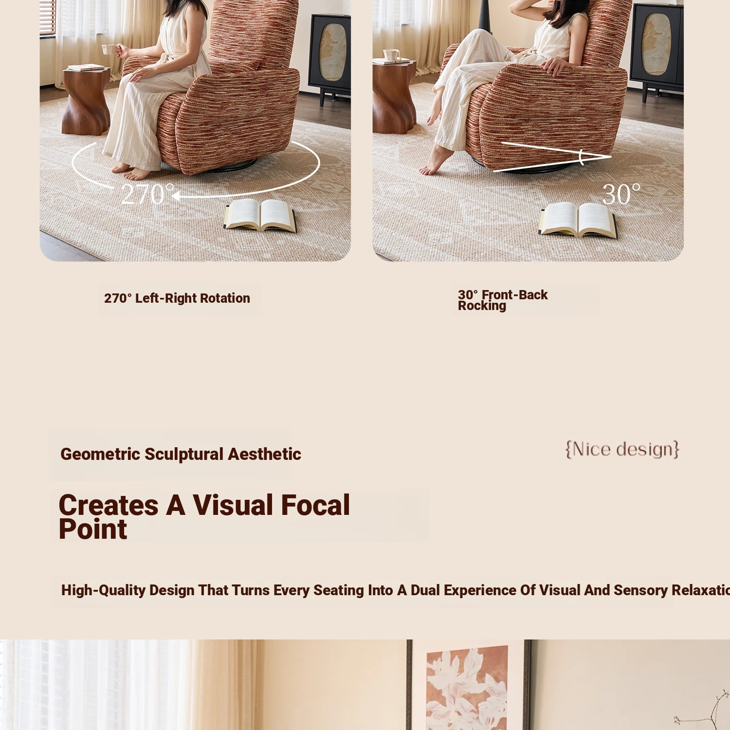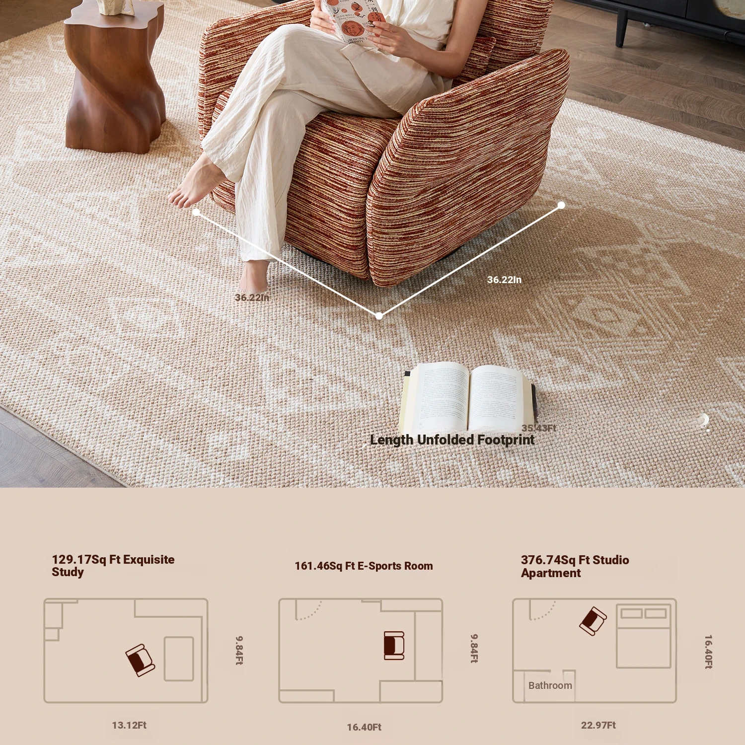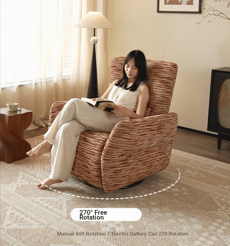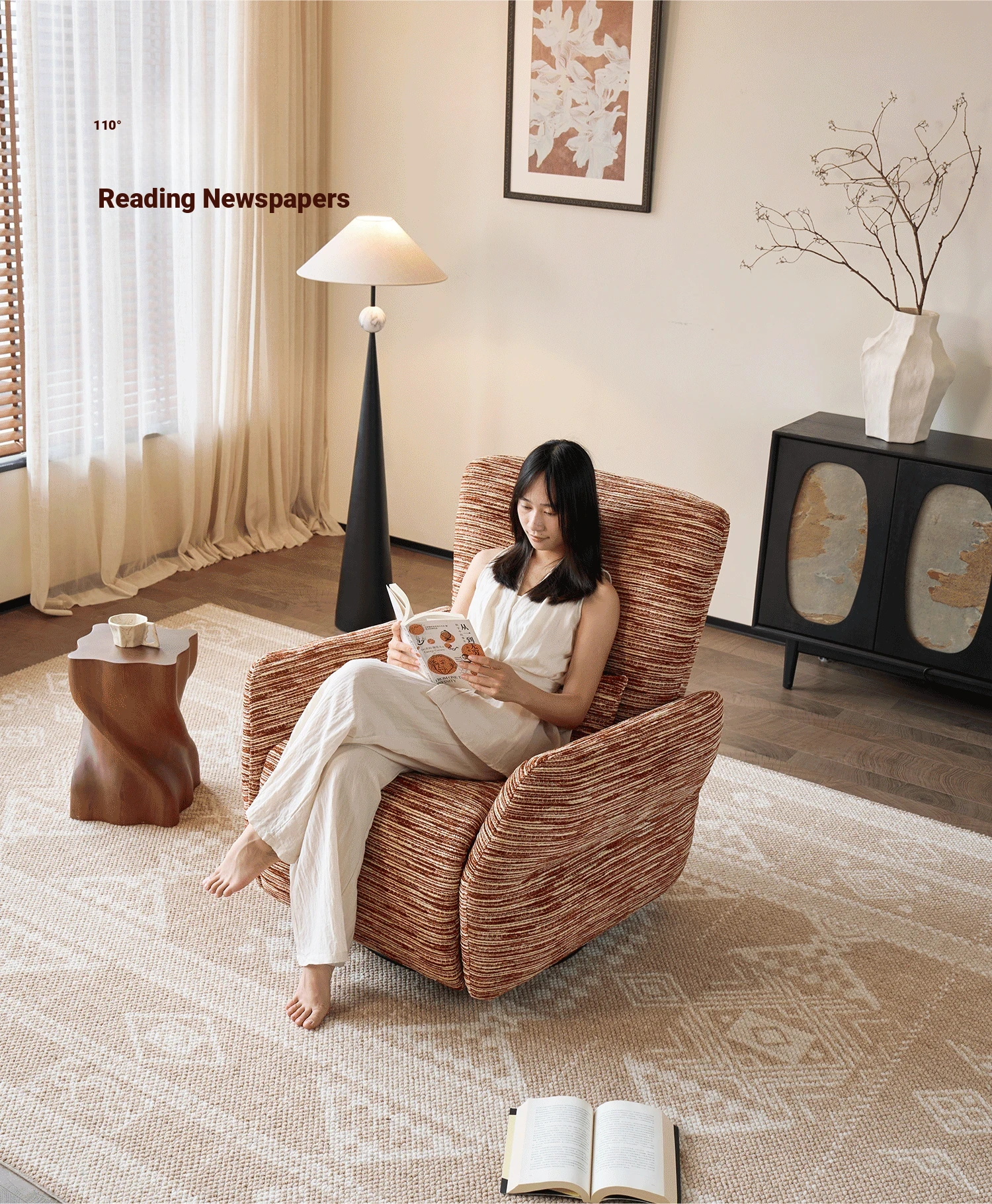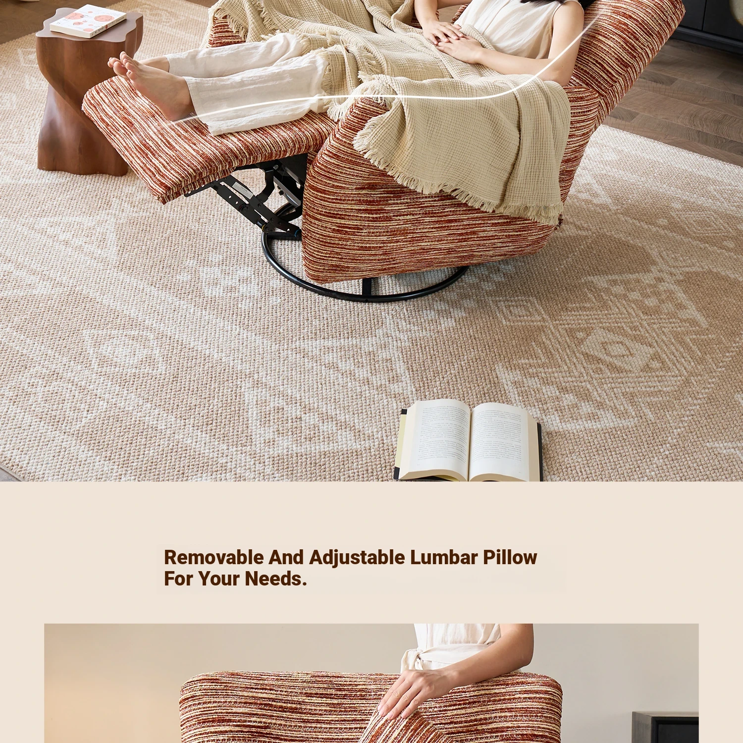 Casa Chi Retro Chenille Fabric Reclining Single Sofa - Versatile Electric Red Armchair for Small Spaces, Perfect for Relaxing and Sleeping