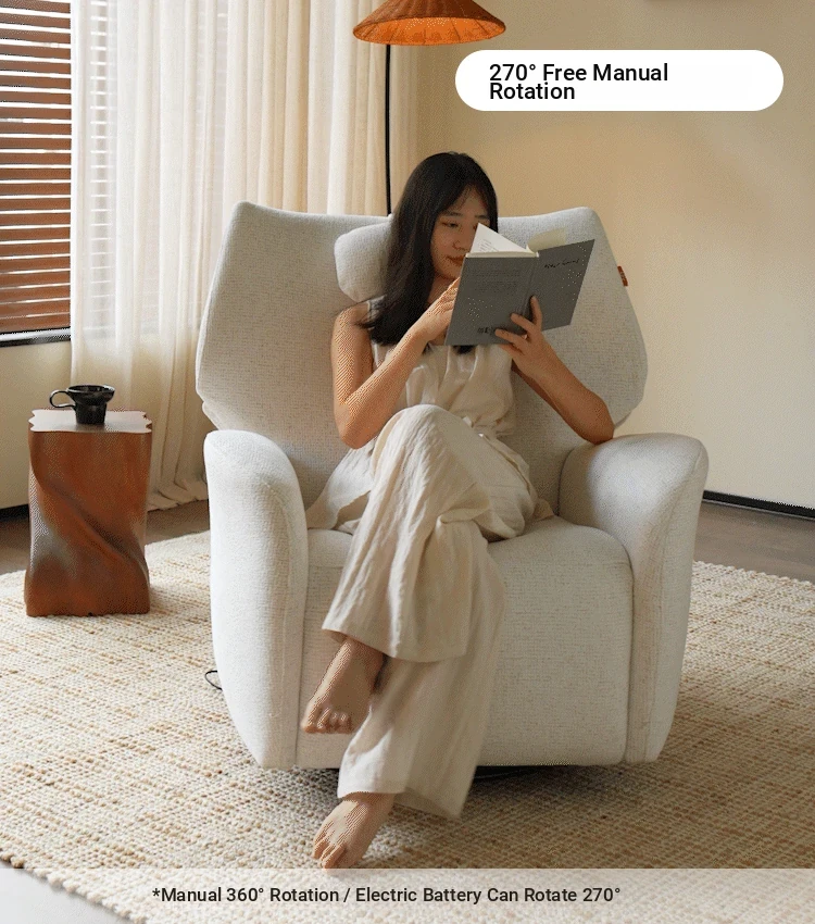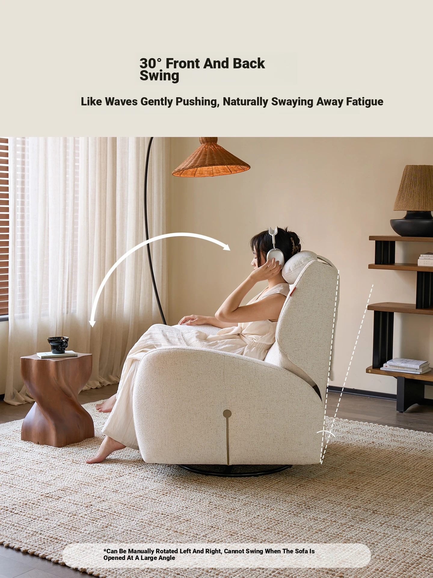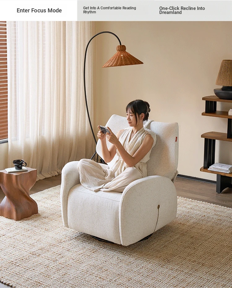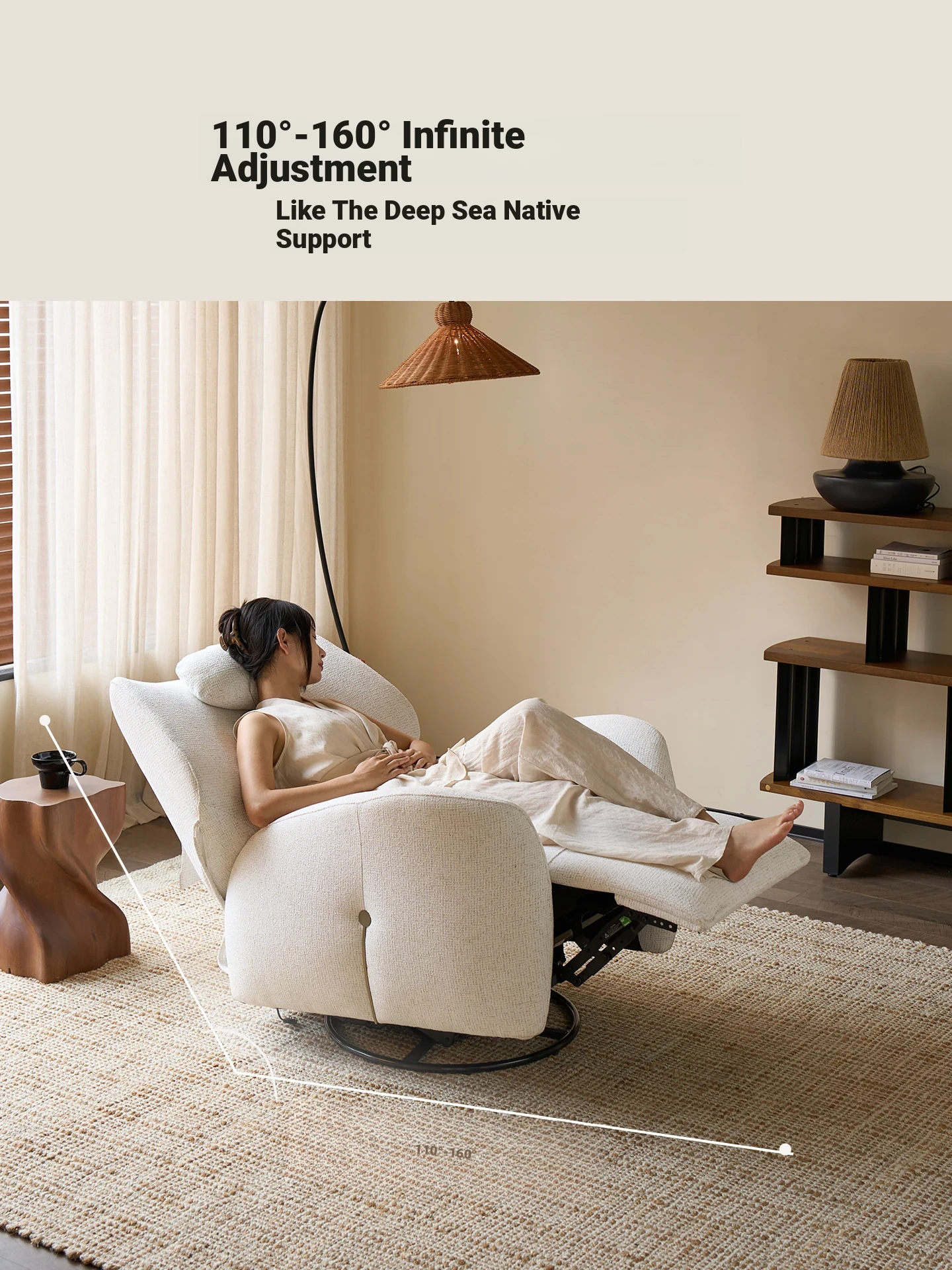 Casa Chi White Wabi-Sabi Style Cotton-Linen Single Sofa - Artistic Electric Multifunctional Upholstered Designer Recliner for Ultimate Comfort and Aesthetic Appeal