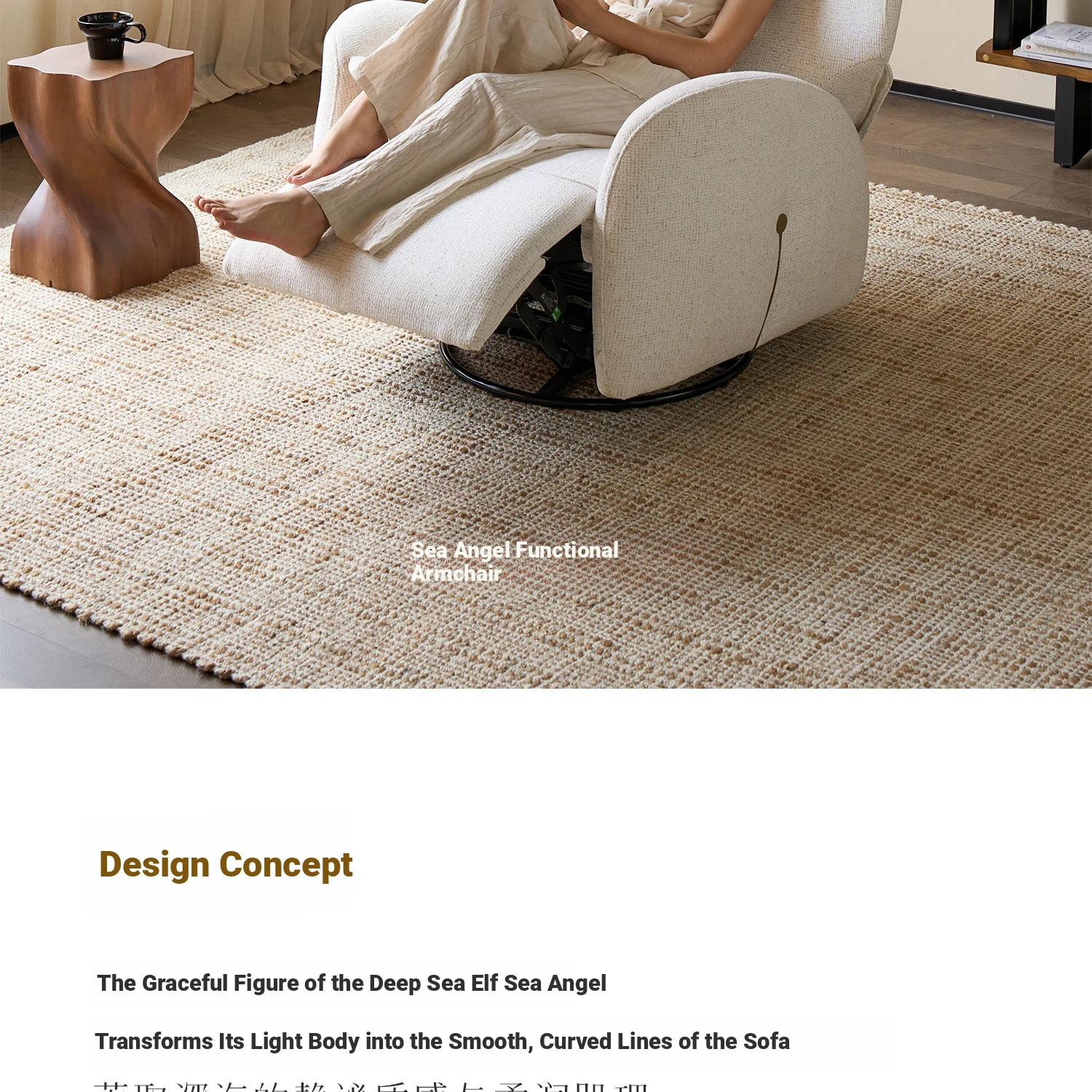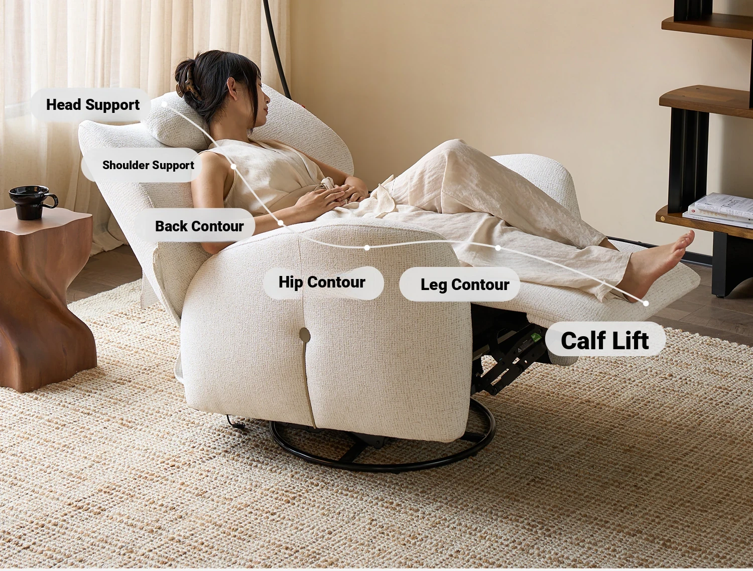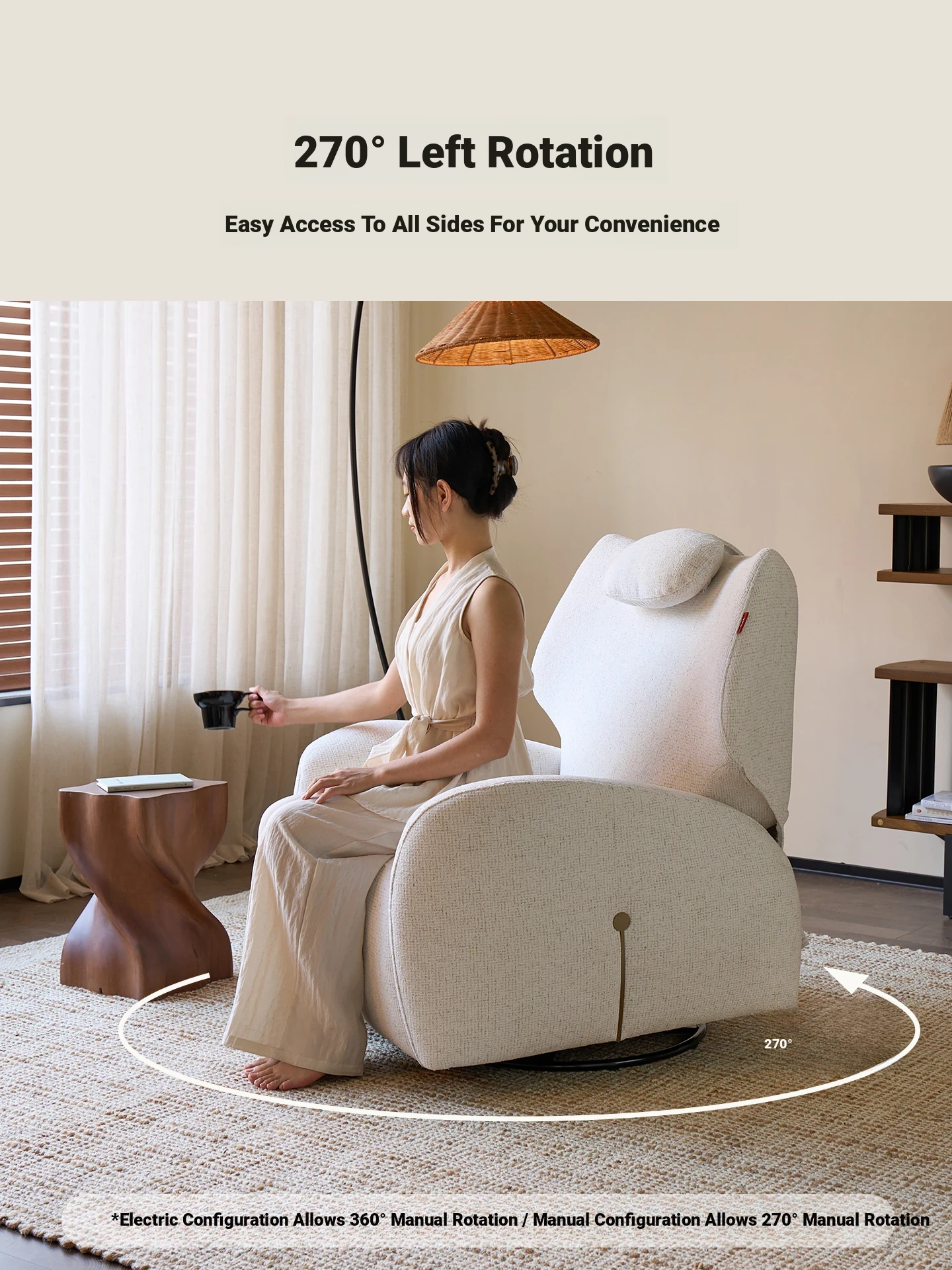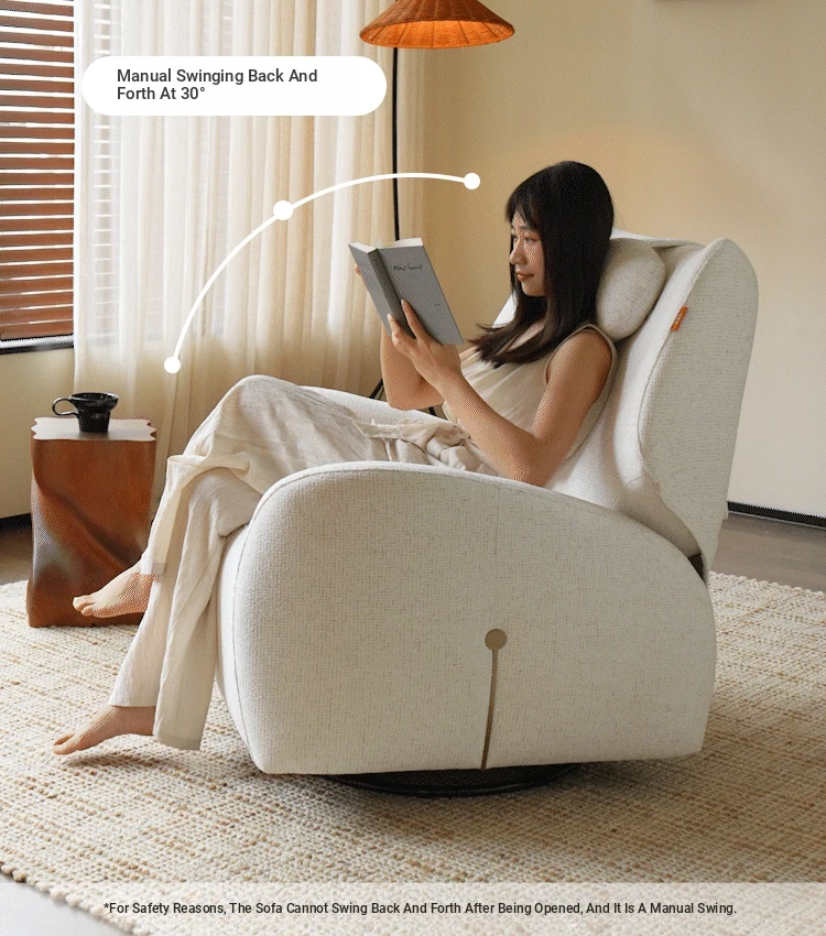 Casa Chi White Wabi-Sabi Style Cotton-Linen Single Sofa - Artistic Electric Multifunctional Upholstered Designer Recliner for Ultimate Comfort and Aesthetic Appeal