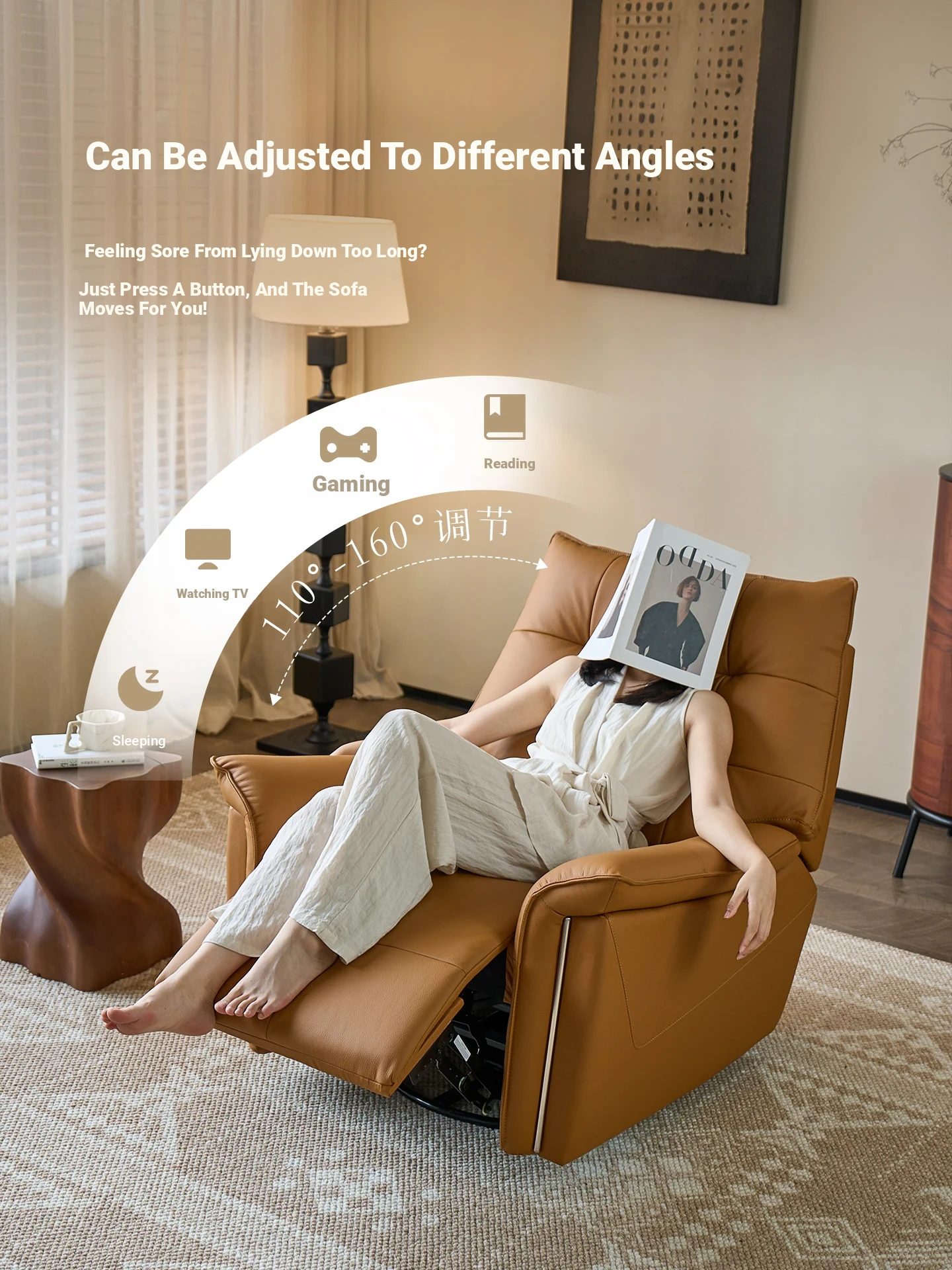 CasaChi Smart Leather Reclining Sofa - Modern Multifunctional Electric Armchair for Ultimate Comfort, Adjustable for Relaxation and Napping. Perfect for Contemporary Living Spaces!