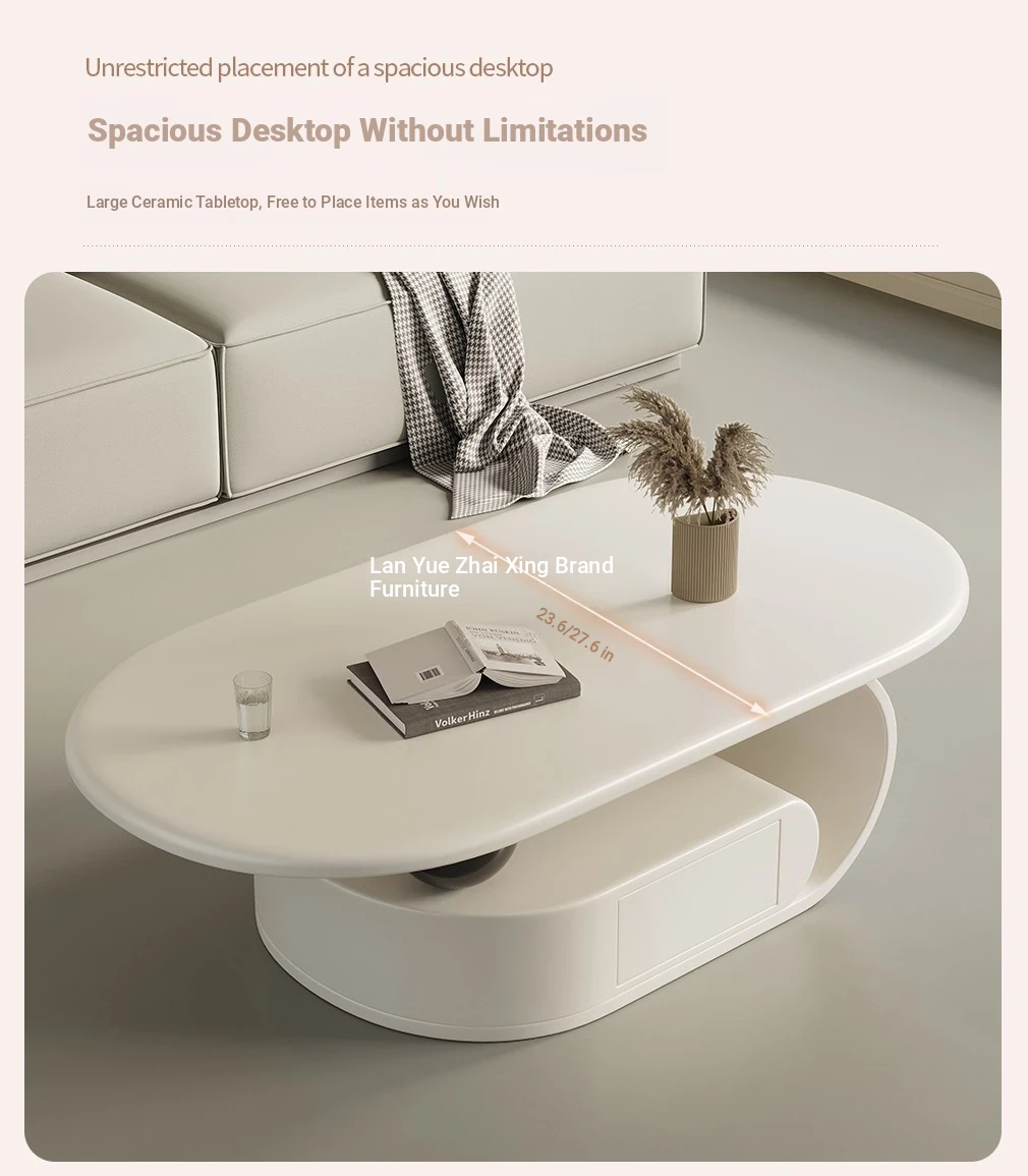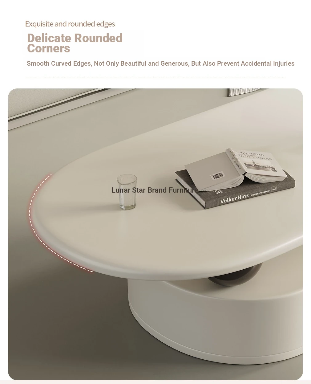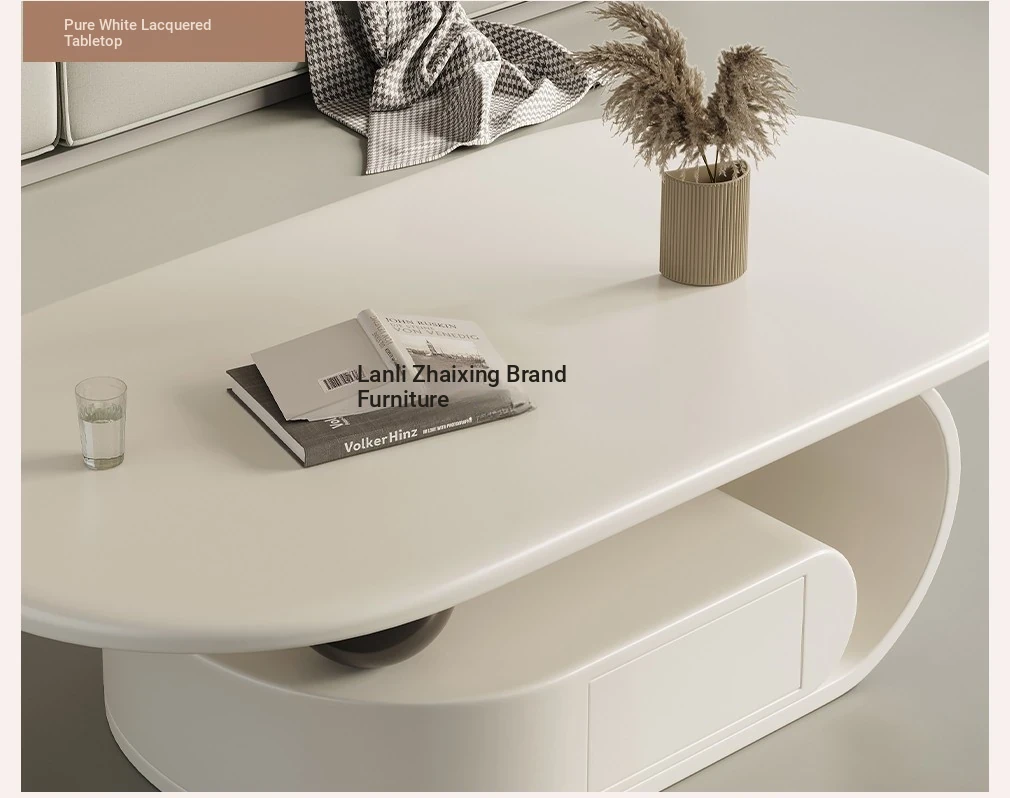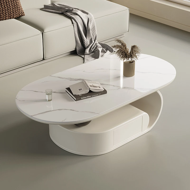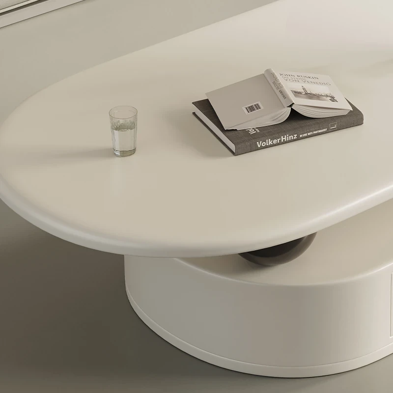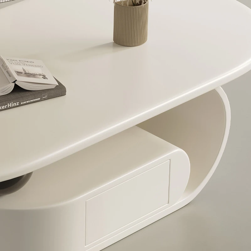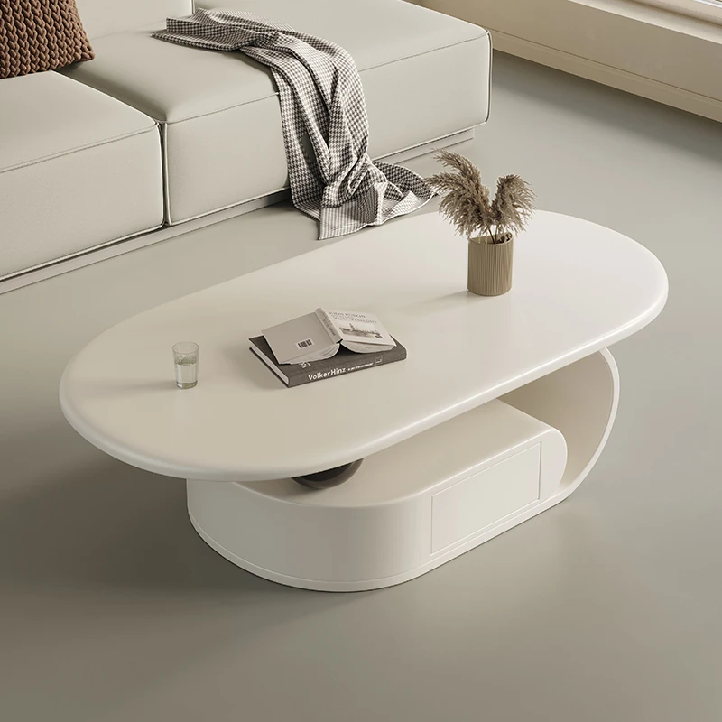 Creamy Cloud-Style Coffee Table for Living Room - Modern Oval Storage Table, Perfect for Small Spaces, Sleek Lacquer Finish