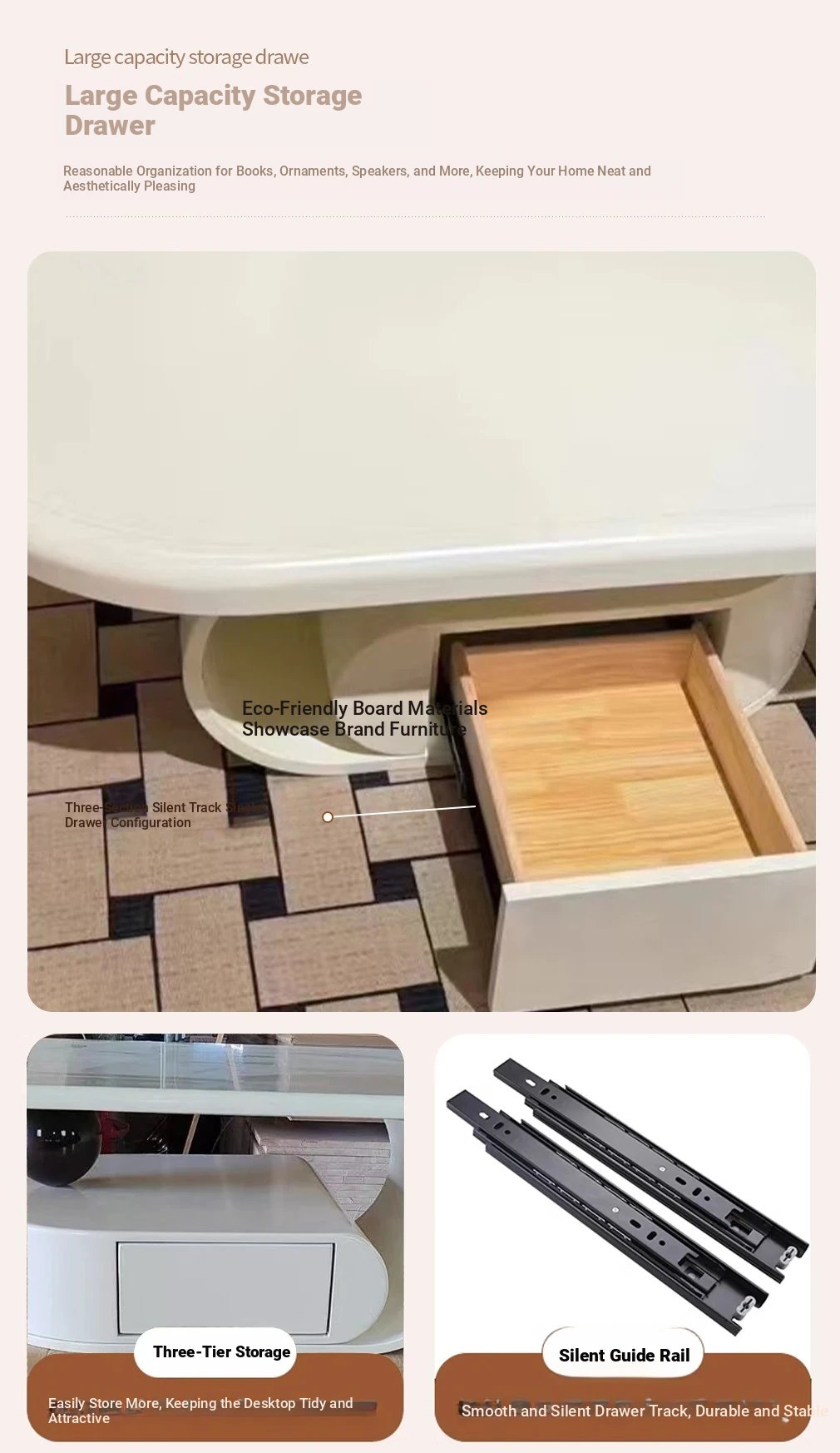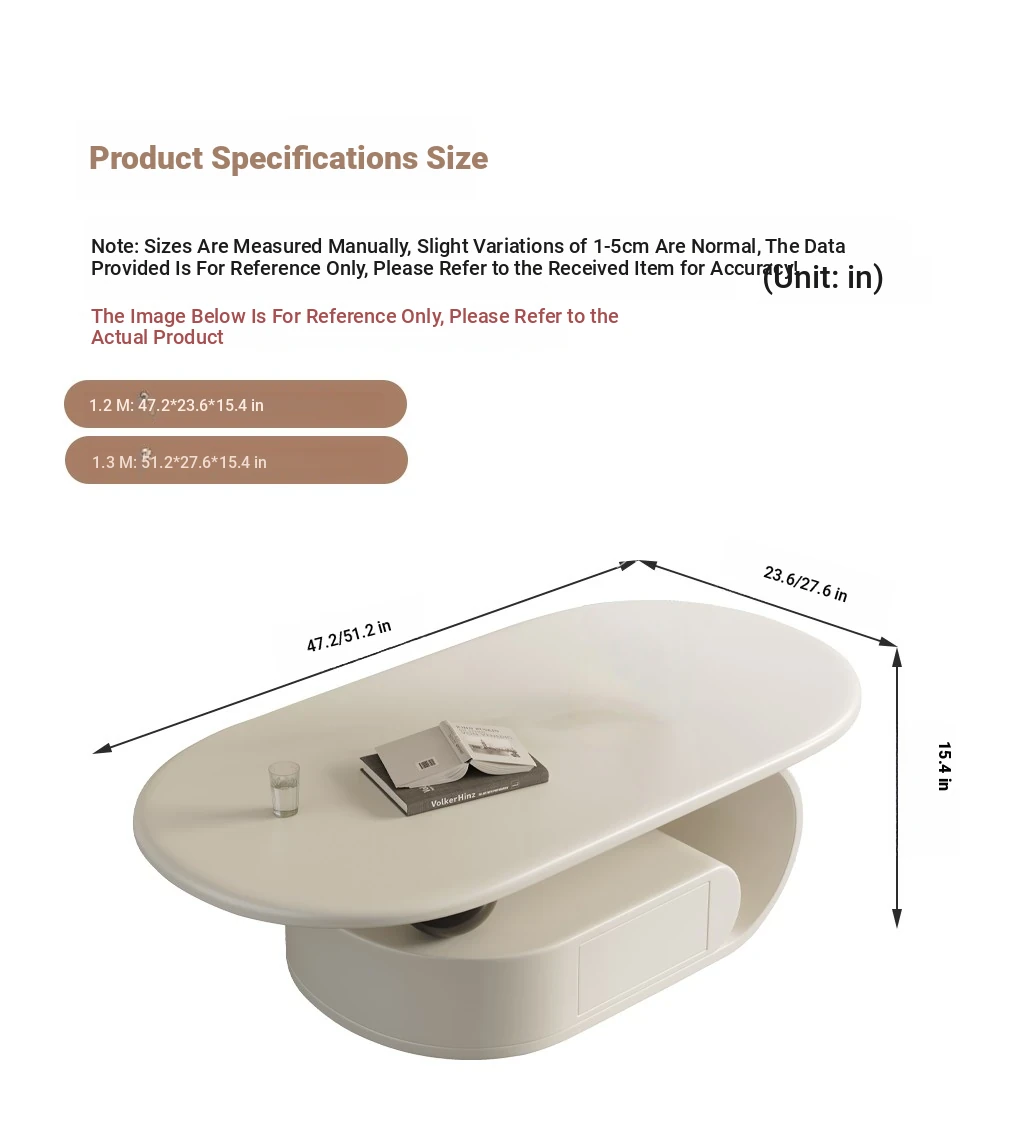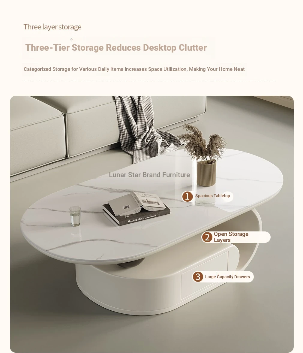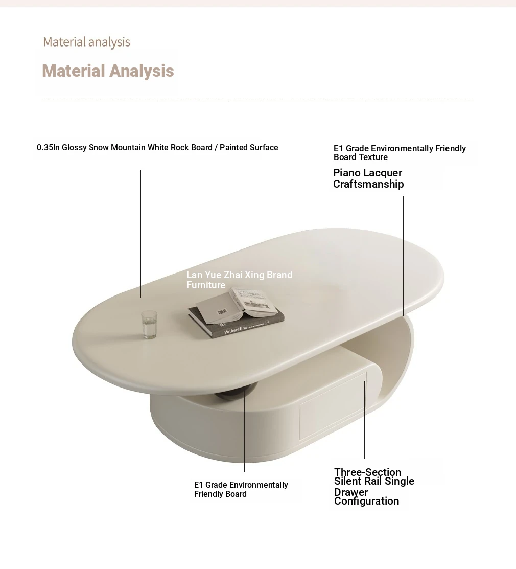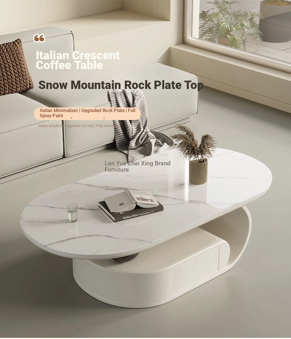Creamy Cloud-Style Coffee Table for Living Room - Modern Oval Storage Table, Perfect for Small Spaces, Sleek Lacquer Finish