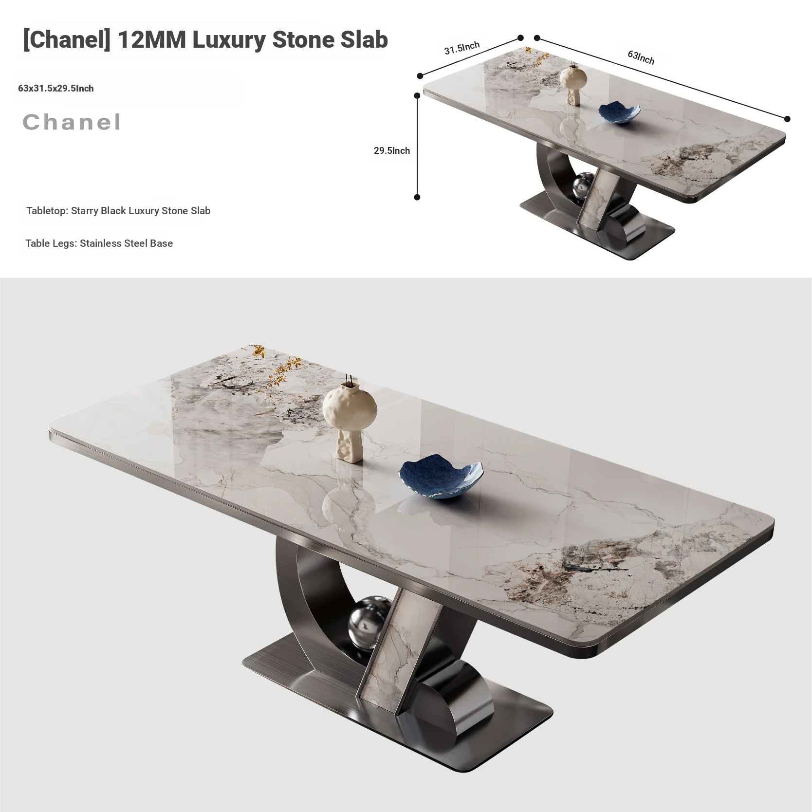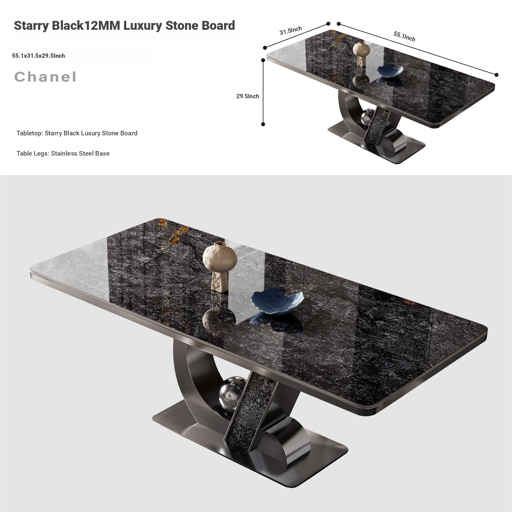 Chanel luxury stone rock plate 0.47in/1600x800