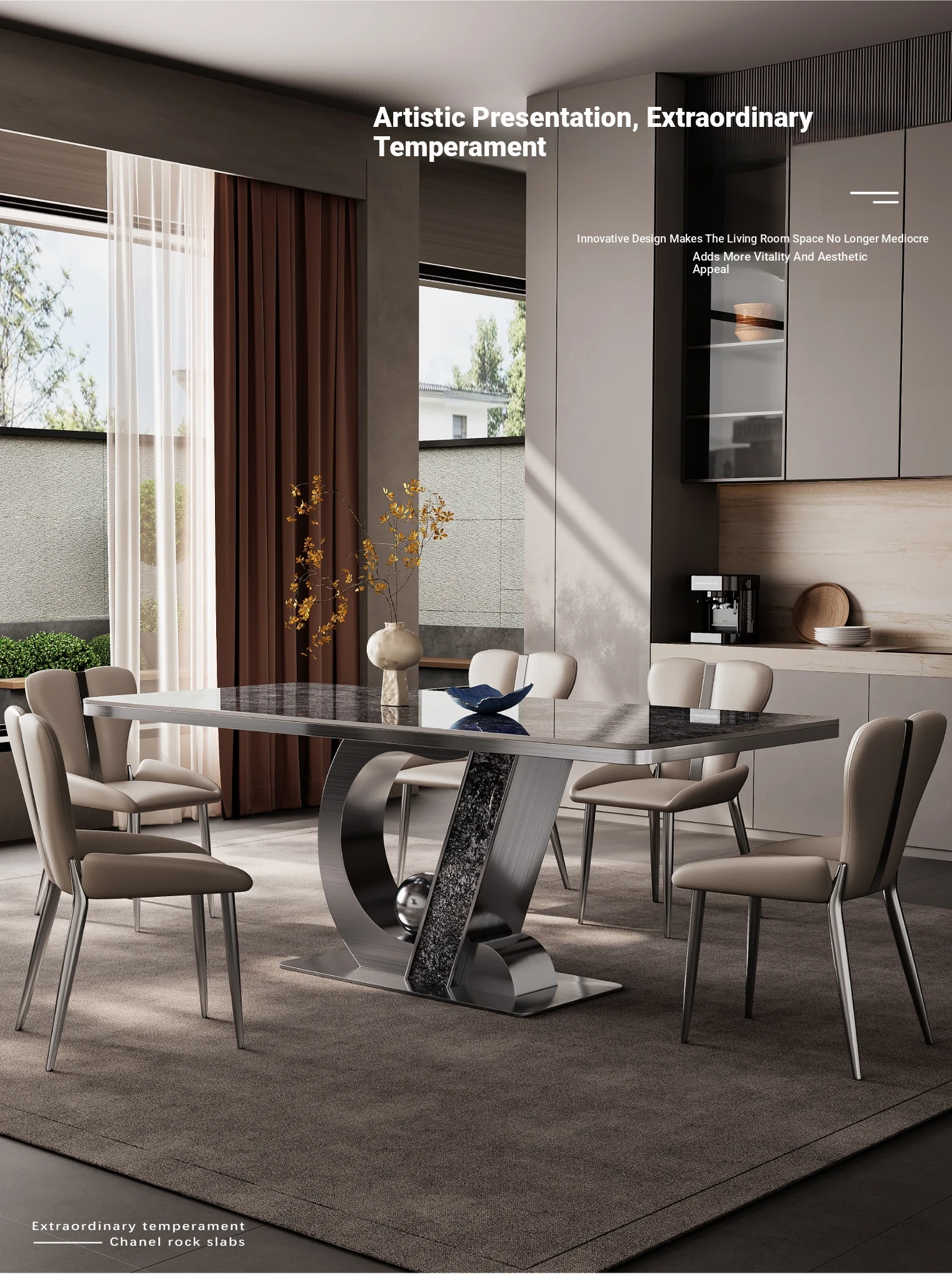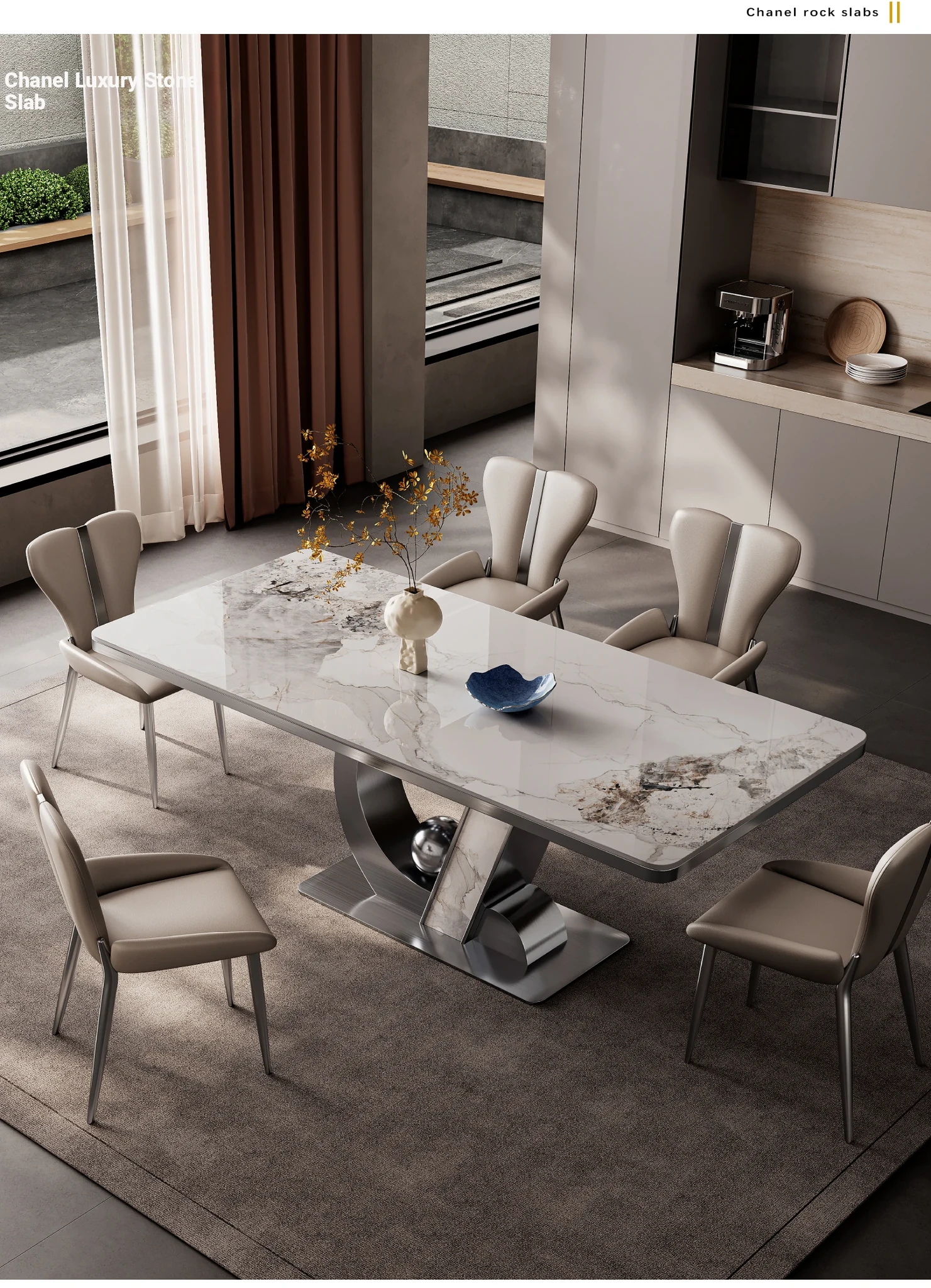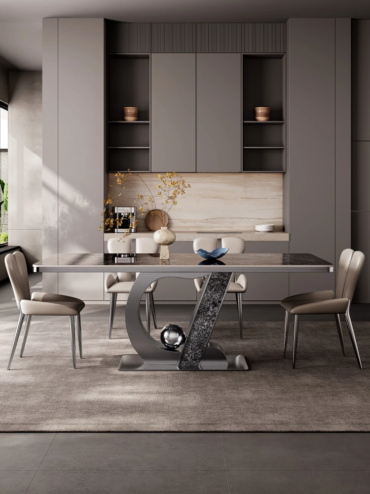 Elegant Minimalist Rectangular Dining Table Set - Luxury Rock Slab Design for Small Spaces, Perfect for Modern Living Rooms and Dining Areas