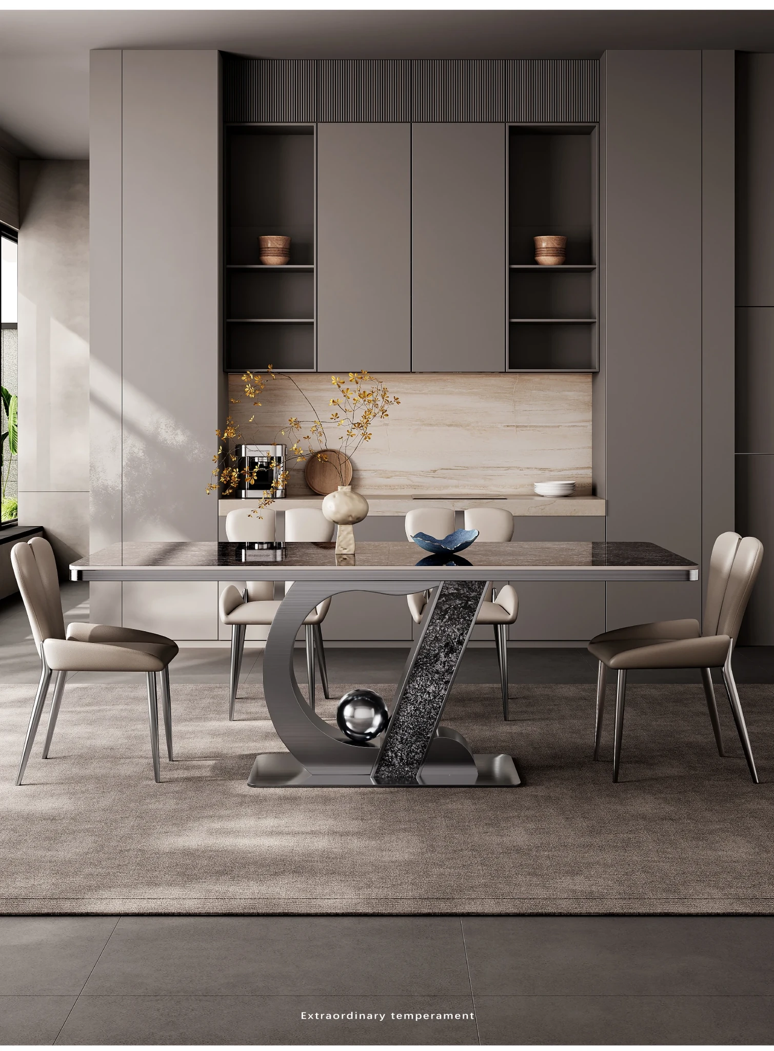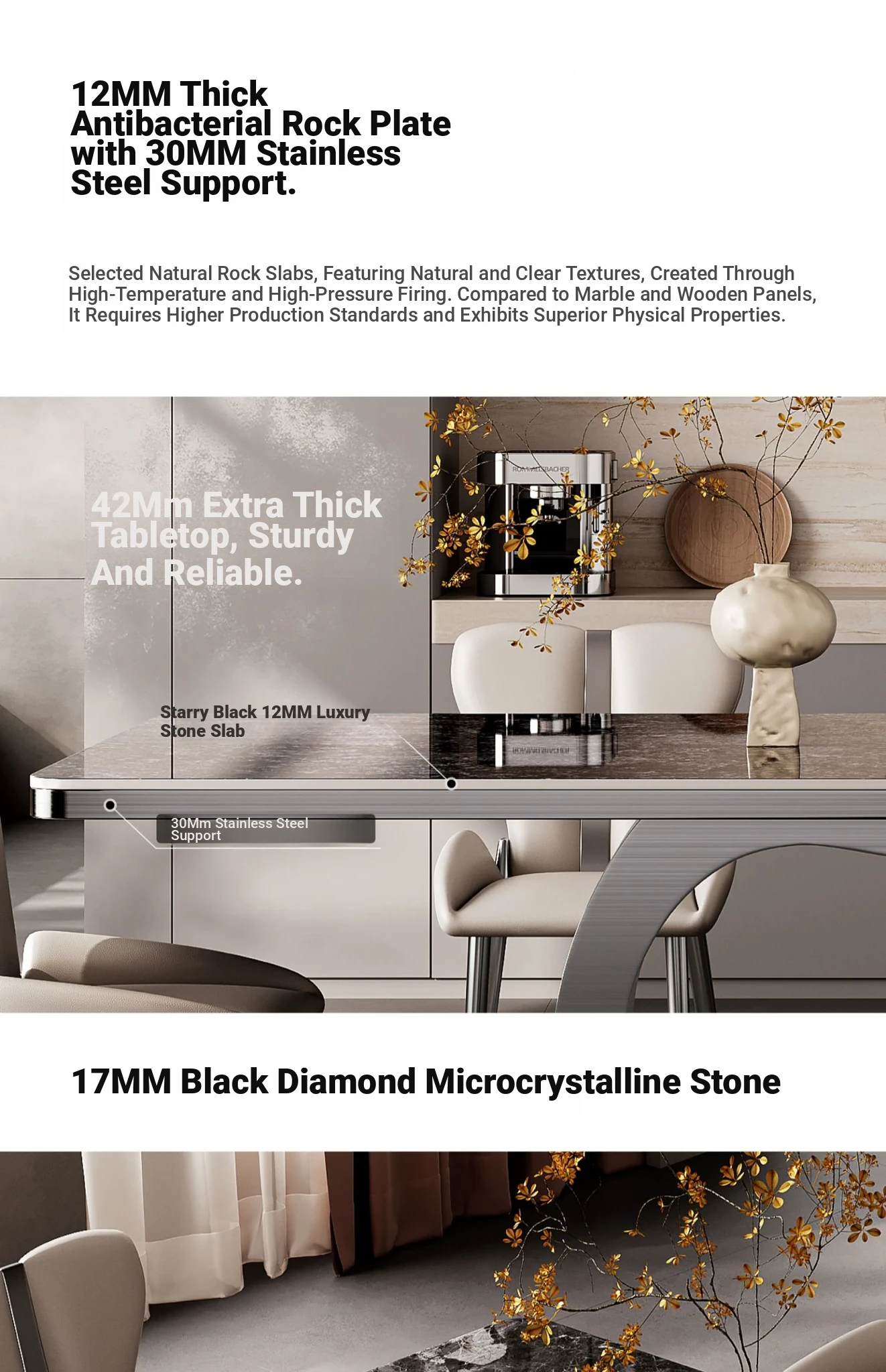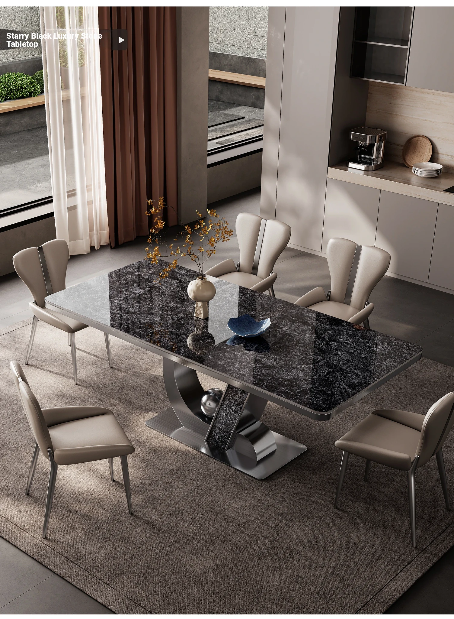 Elegant Minimalist Rectangular Dining Table Set - Luxury Rock Slab Design for Small Spaces, Perfect for Modern Living Rooms and Dining Areas